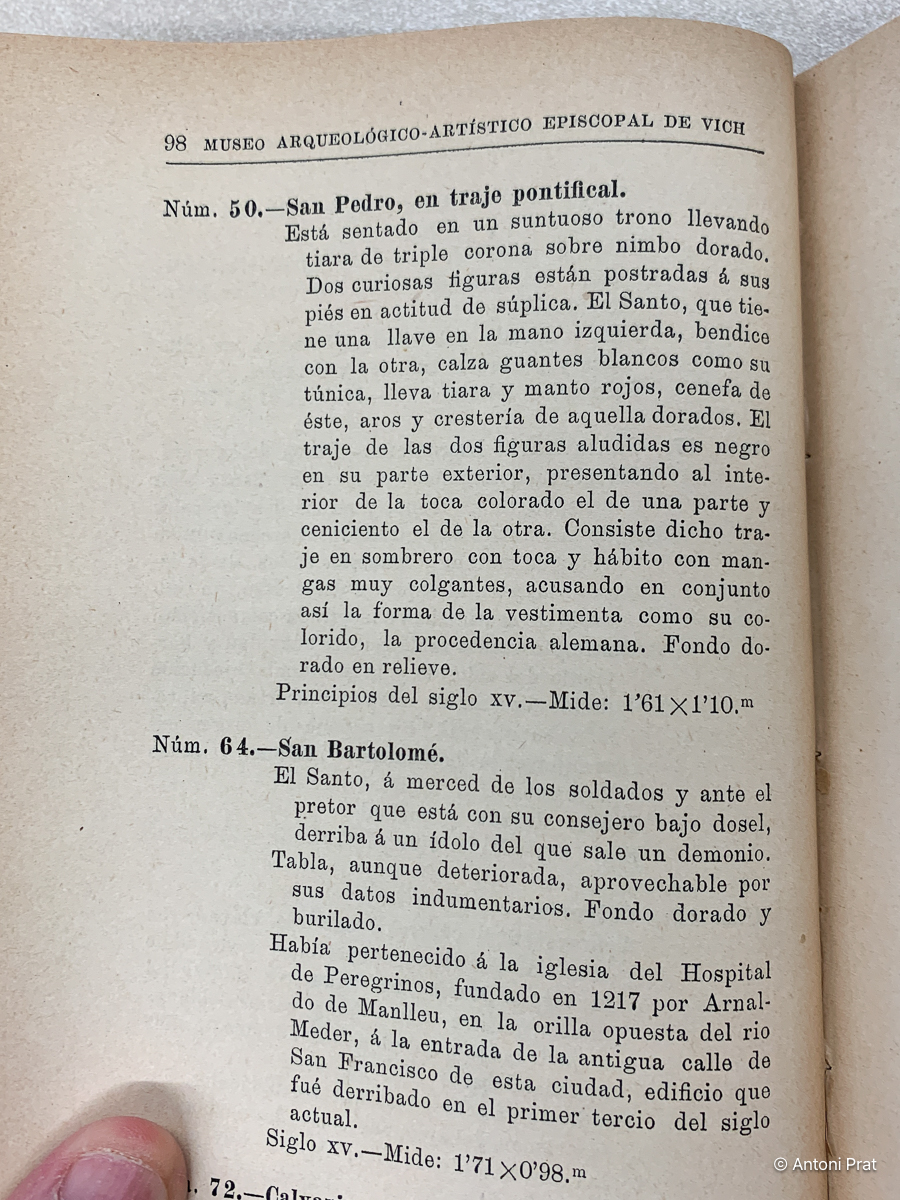 1893 Catálogo del Museo Episcopal de Vich (J. Morales)