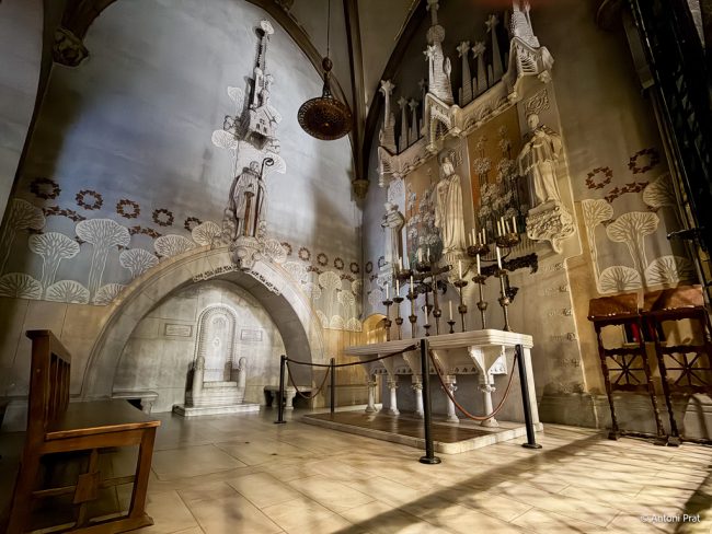 Aquesta barana mòbil, dissenyada per Josep Maria Pericas l’any 1916, estava situada a dins de la basílica i delimitava l’espai del presbiteri del temple. Està decorada amb motius vegetals geometritzats, habituals en l’estil de l’arquitecte, repussats i amb elements daurats, i se subjecta mitjançant una estructura de ferros entrelligats. Actualment, el seu emplaçament s’ha traslladat…