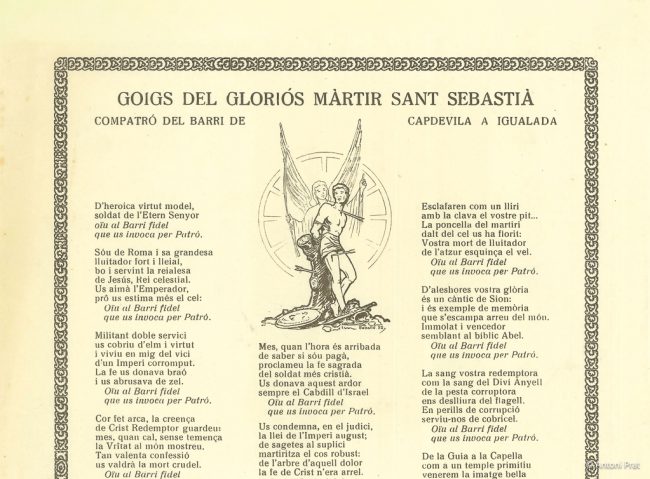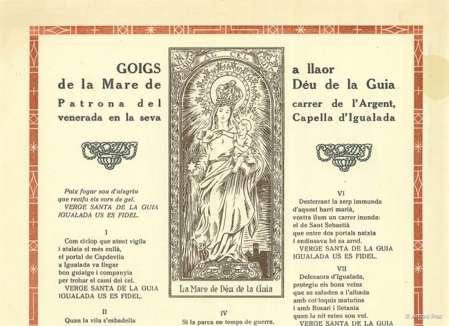 TÍTOL: GOIGS A LLAOR DE L’HONORABLE CAVALLER EN JOSEP MARIA OLLÉ, SENYOR DE “CÂN OLLÉ” DE LA GUÀRDIA I CIUTADÀ IL·LUSTRE DE LA MOLT NOBLE, MOLT LLEIAL I DENODADA CIUTAT D’IGUALADA ADVOCACIÓ: goig a un particular PARRÒQUIA / CAPELLA: goig a un particular AUTOR LLETRA: no consta AUTOR MÚSICA: no consta AUTOR DIBUIXOS: no consta…