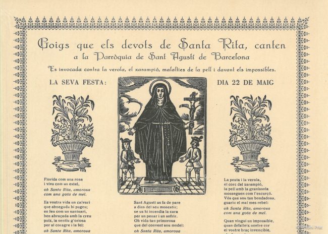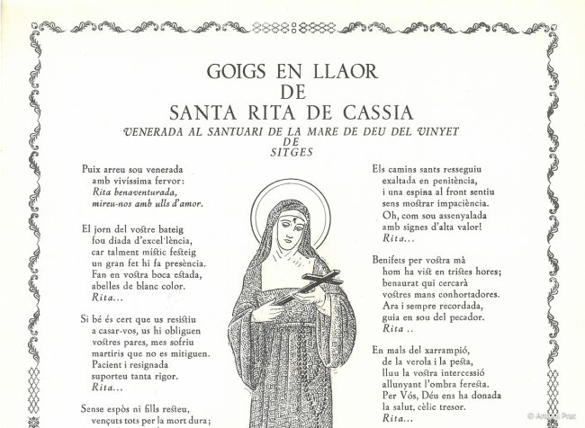 TÍTOL: GOIGS EN HONOR DEL GLORIÓS SANT ISIDRE LLAURADOR ADVOCACIÓ: Sant Isidre PARRÒQUIA / CAPELLA: genèric AUTOR LLETRA: Mn. Gironés AUTOR MÚSICA: no consta AUTOR DIBUIXOS: no consta IMPREMTA: Tip. Carreras – Girona EDITOR: no consta ANY: 1955 OBSERVACIONS: Goigs del Bisbat de Girona – N.º 376 MIDES: 31,5 x 21,5 centímetres