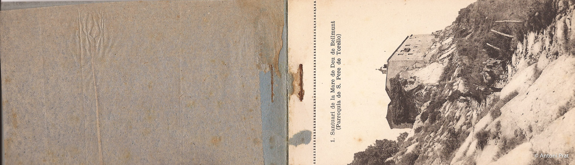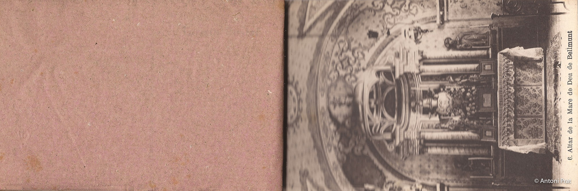 Magnífic llibret que recull un conjunt de 10 postals amb fotografies realitzades, probablement, el mateix dia. Reportatge fotogràfic que recull d’una manera molt encertada tot el conjunt del que aleshores era Bellmunt i el seu entorn: el Santuari, la Creu, l’interior de la Capella, la Font Vidranesa, etc…