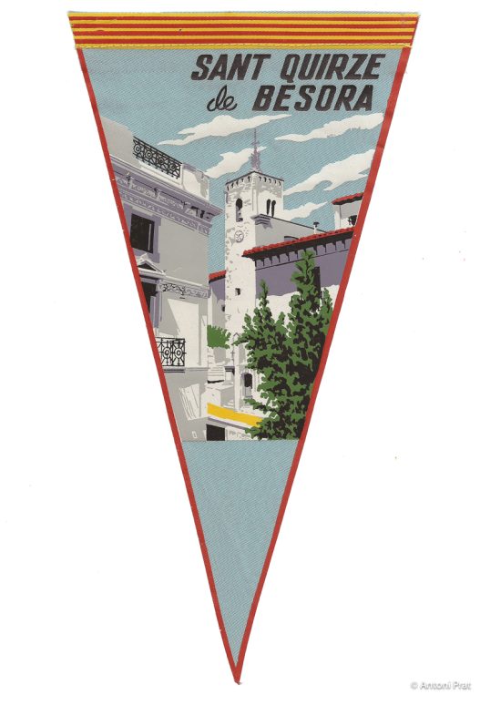 Mostra de banderins relacionats amb Sant Quirze de Besora. És curiós veure com la imatge més repetitiva sigui la del bar restaurant el Túnel. Això demostra la importància que en aquells anys tenia la carretera N152. El Túnel era un punt de referència per parar a reposar del viatge, menjar i omplir el dipòsit del cotxe.