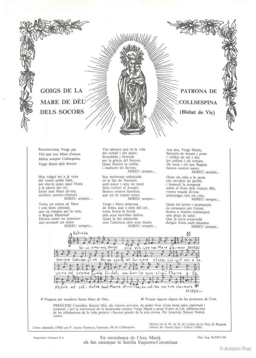 GOIGS DE LA MARE DE DÉU DELS SOCORS, PATRONA DE COLLSESPINA (BISBAT DE VIC)