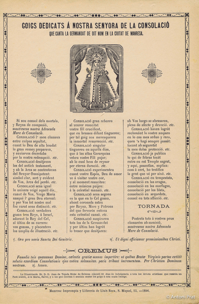 GOIGS DEDICATS Á NOSTRA SENYORA DE LA CONSOLACIÓ, QUE CANTA LA GERMANDAT DE DIT NOM EN LA CIUTAT DE MANRESA