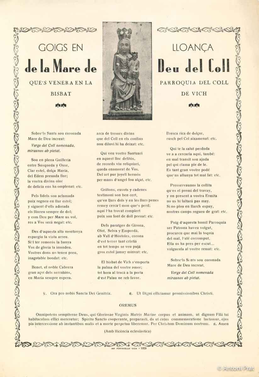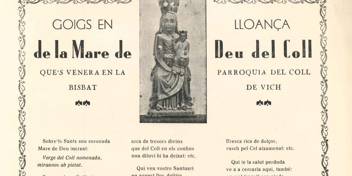 GOIGS EN LLOANÇA DE LA MARE DE DEU DEL COLL, QUE’S VENERA EN LA PARROQUIA DEL COLL, BISBAT DE VICH