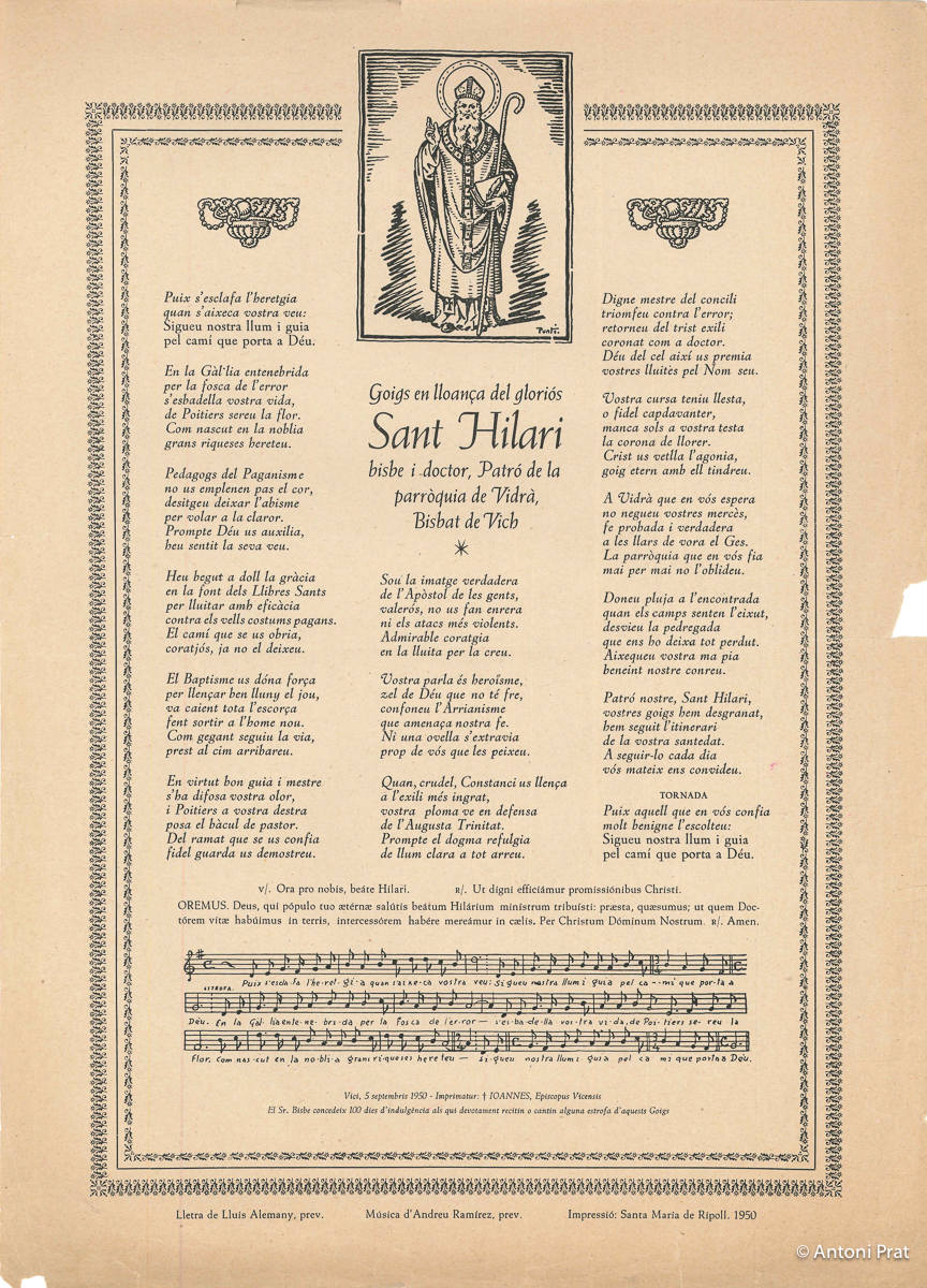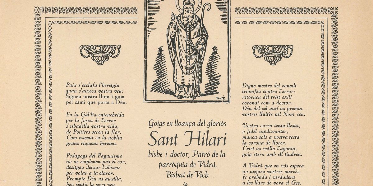 GOIGS EN LLOANÇA DEL GLORIÓS SANT HILARI, BISBE I DOCTOR, PATRÓ DE LA PARÓQUIA DE VIDRÀ, BISBAT DE VICH