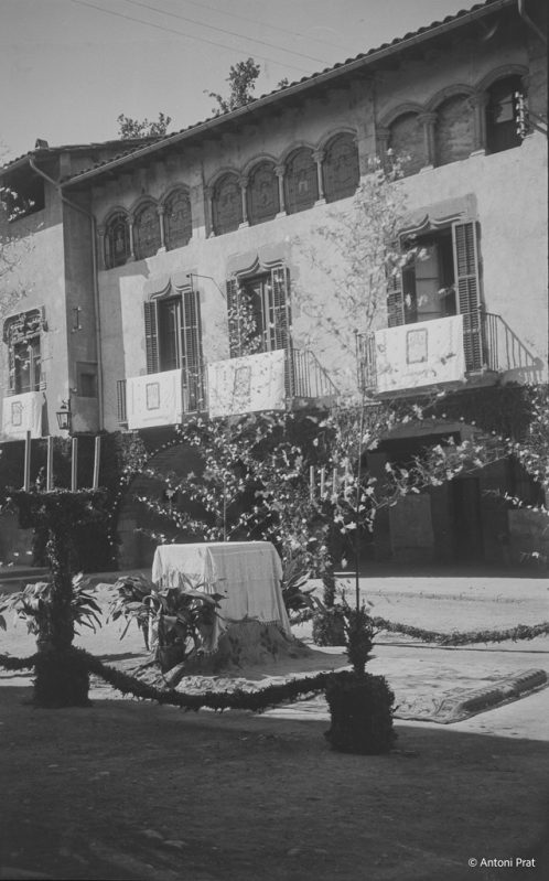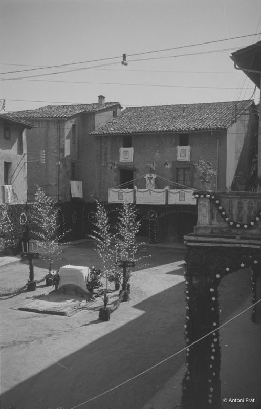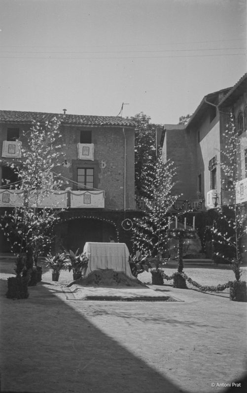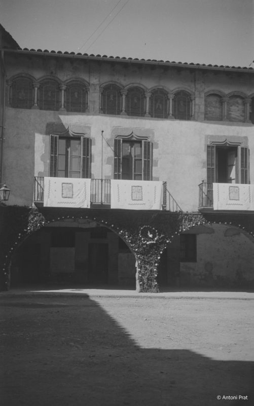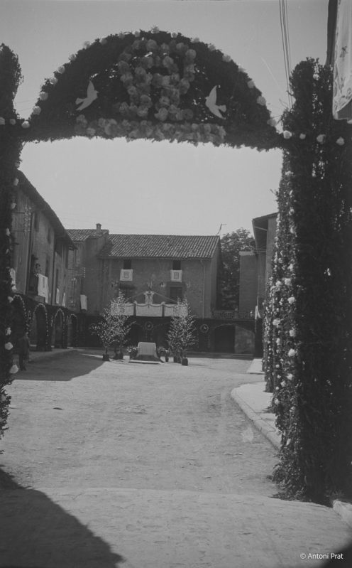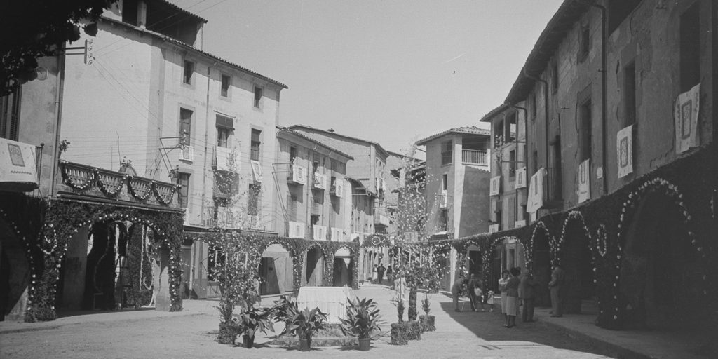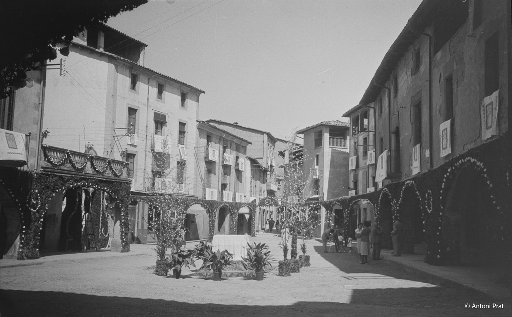 Recull d’onze imatges de l’engalanament de la plaça Vella de Torelló amb motiu de la visita de la Mare de Déu de Fàtima el mes de setembre de 1950.