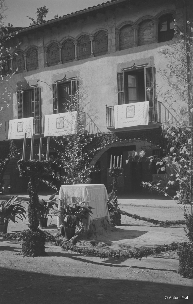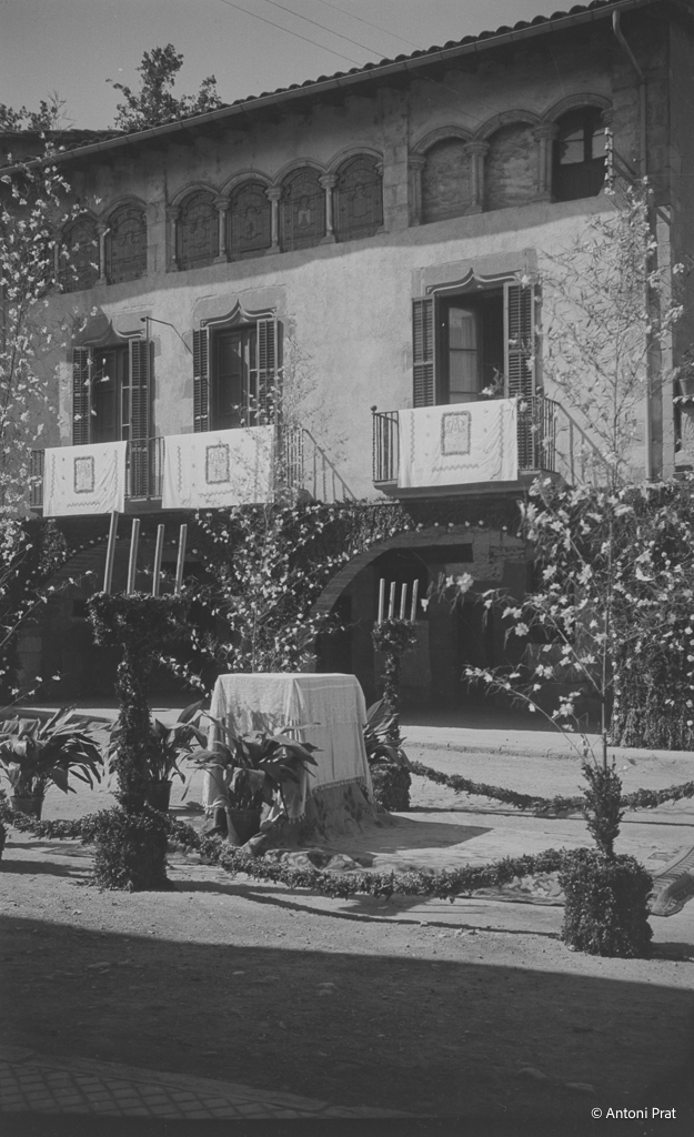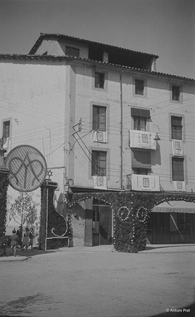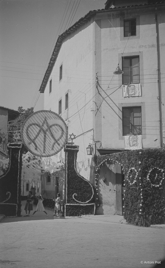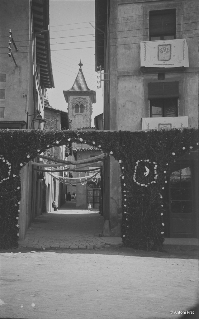 Recull d’onze imatges de l’engalanament de la plaça Vella de Torelló amb motiu de la visita de la Mare de Déu de Fàtima el mes de setembre de 1950.