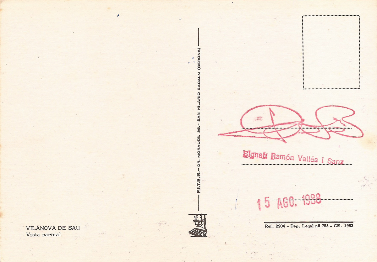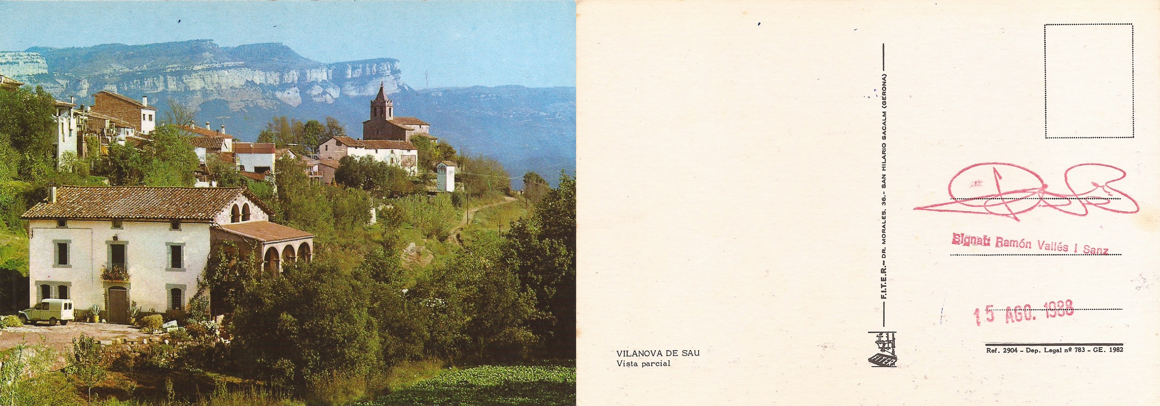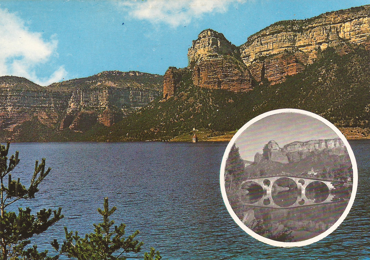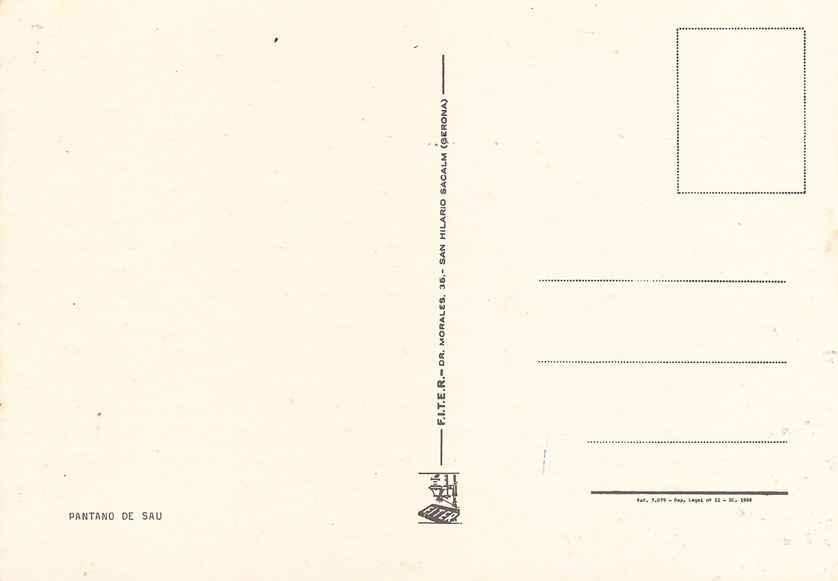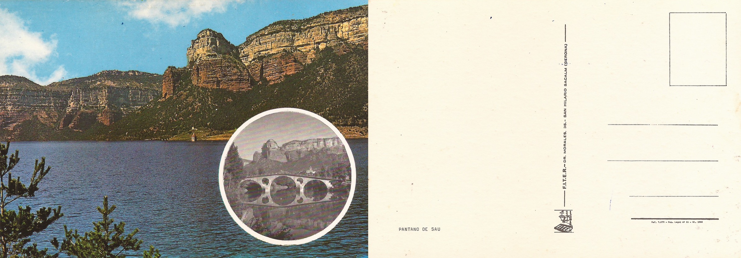 Col·lecció de postals en color de l’embassament de Sau i el seu entorn, editades per F.I.T.E.R. En aquest cas les imatges tant ens mostren indrets del poble de Vilanova de Sau com de l’embassament.
