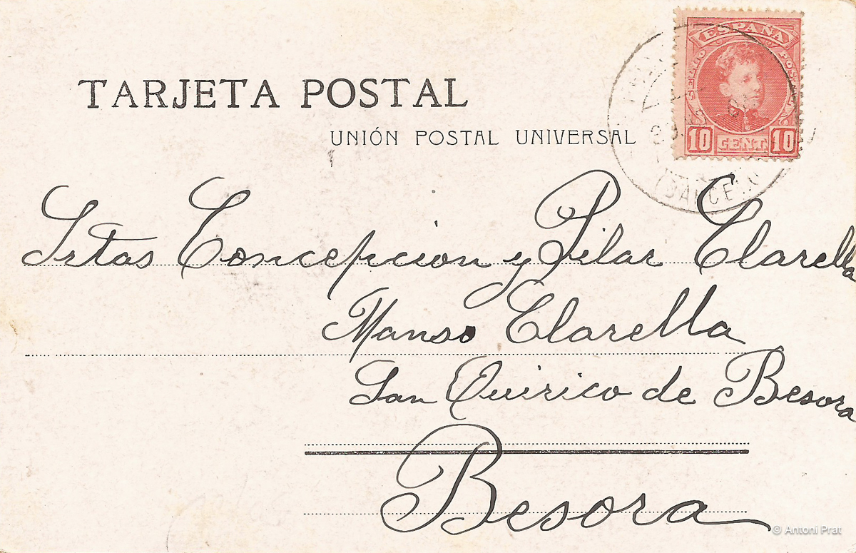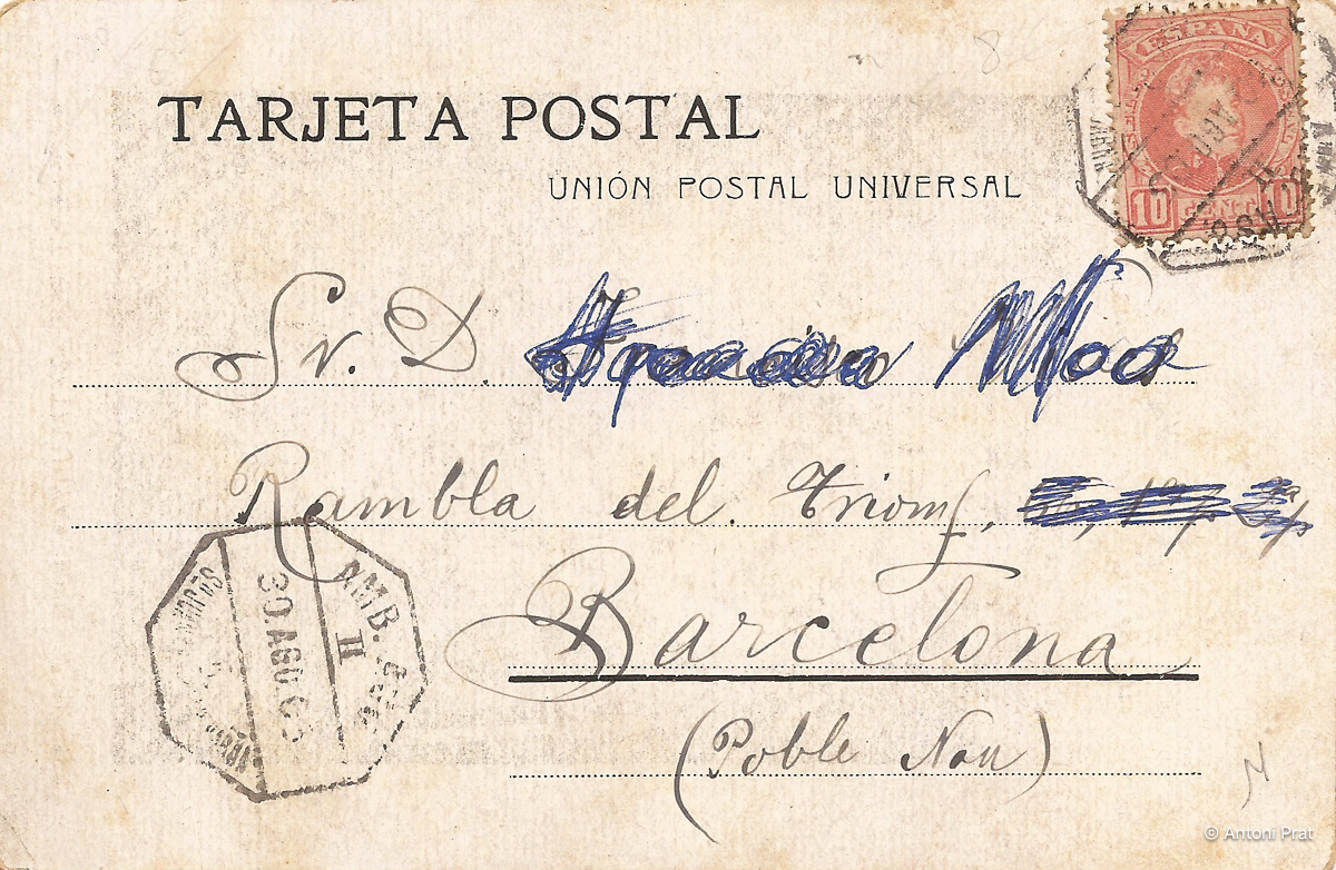 Se sap que l’any 1906 aquesta particularitat va quedar regulada, doncs seguint l’ordre de les “Unión Postal Universal” s’establí que les postals en el revers fossin partides: al costat dret aniria l’adreça i a l’esquerra, el text.