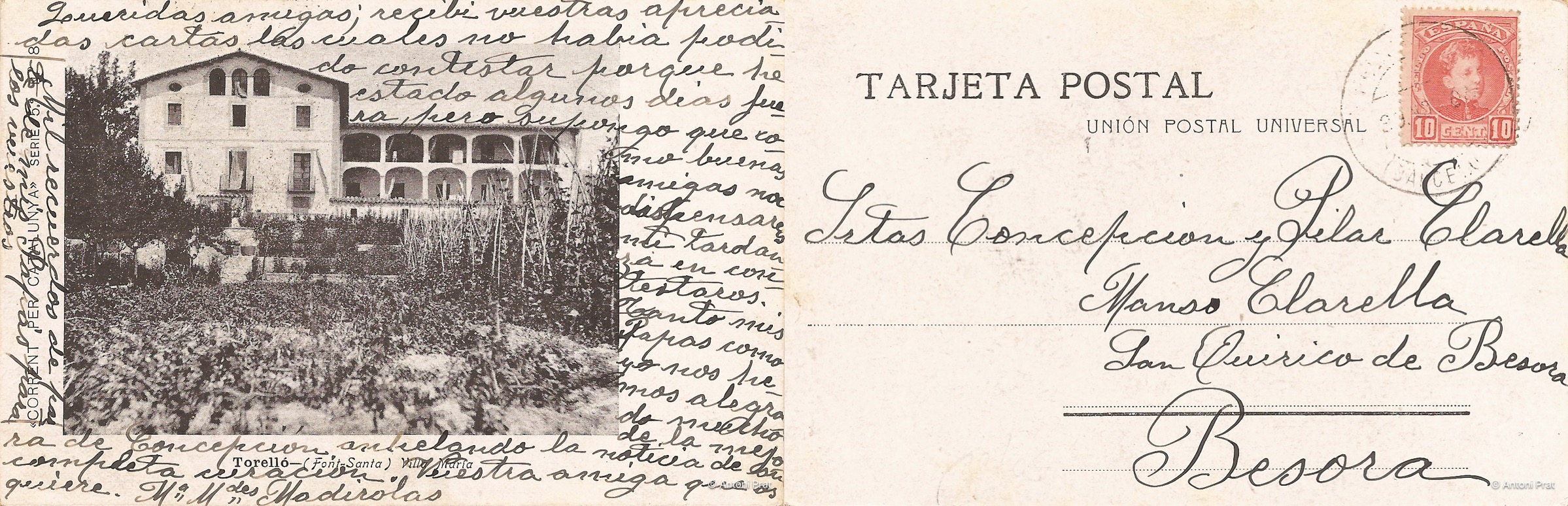 Voldria aprofitar per explicar un fet que m’ha cridat molt l’atenció: a mida que vas trobant postals més antigues, destaca el fet que n’hi ha moltes que estan escrites a la part del davant. A sobre mateix, al costat o als voltants de la pròpia fotografia.