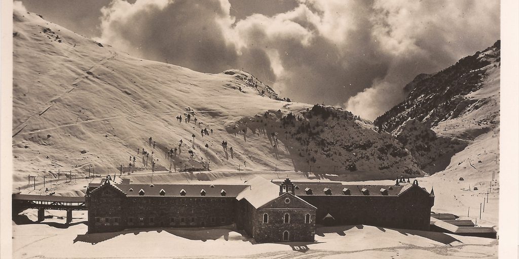 Col·lecció completa de deu postals numerades del santuari de Núria publicades en un llibret tipus funda i en format acordió, amb la denominació Pireneu Catala – Espanya – Cami Ribes a Nuria.