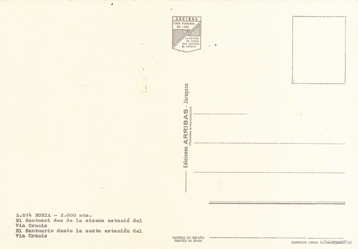 abr.262025Postals antigues Col·lecció de postals en color de Núria i el seu voltant, editades per Ediciones Arribas. visualització de les postals: – EXPOSICIÓ FORMAT COLLAGE – EXPOSICIÓ FORMAT INDIVIDUALITZAT, vista davant i darrere Category: Postals antiguesBy Antoni Prat i Puigabril 26, 2025 Comparteix aquest article Share on FacebookShare on Facebook Share on XShare on X Pin itShare on Pinterest Author: Antoni Prat i Puig Post navigationPreviousPrevious post:COBLLES de Nostra Senyora de Bellver, any 1973NextNext post:POSTALS ANTIGUES: Núria, recopilació de postals en color diversesRelated PostsPOSTALS ANTIGUES: Presentació i contingutgener 19, 2017POSTALS ANTIGUES: Núria, col·lecció L. Roisindesembre 10, 2025POSTALS ANTIGUES: Núria, col·lecció Cami Ribes a Nuria Núm. 1desembre 9, 2025POSTALS ANTIGUES: Núria, col·lecció Santuario Ntra. Sra. de Nuriadesembre 8, 2025POSTALS ANTIGUES: Núria, col·lecció Pireneu Català Sèrie Idesembre 8, 2025POSTALS ANTIGUES: Borgonyà, col·lecció sense referència d’autorsetembre 2, 2025