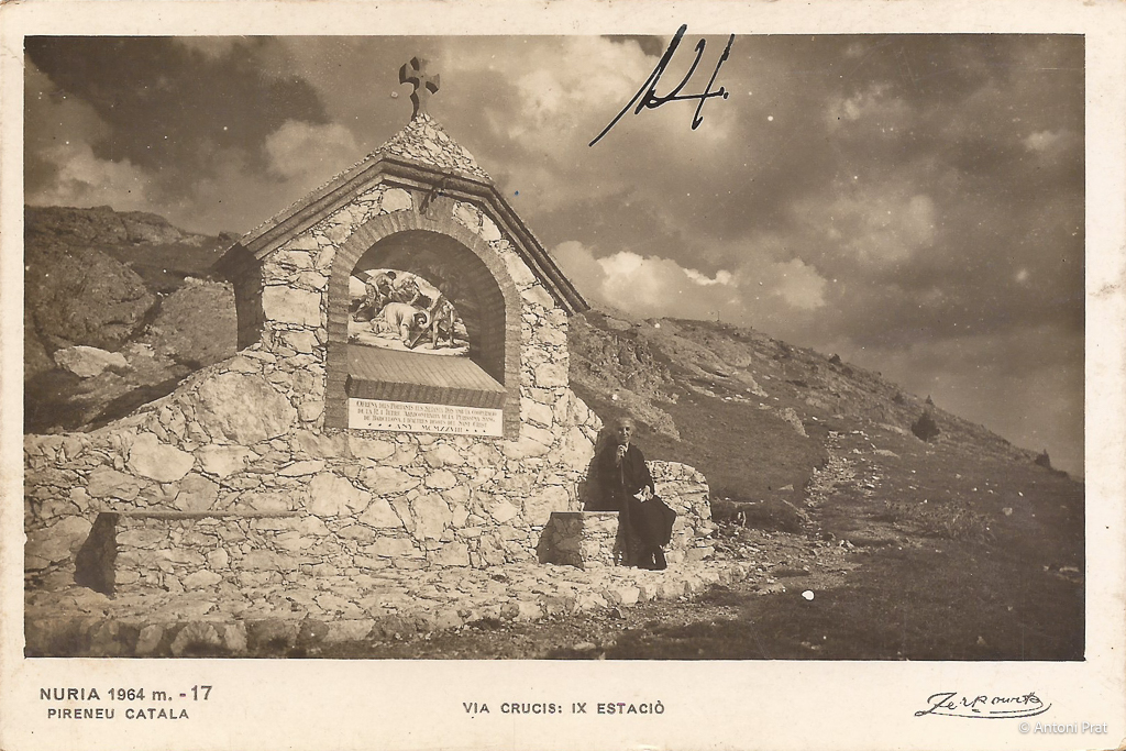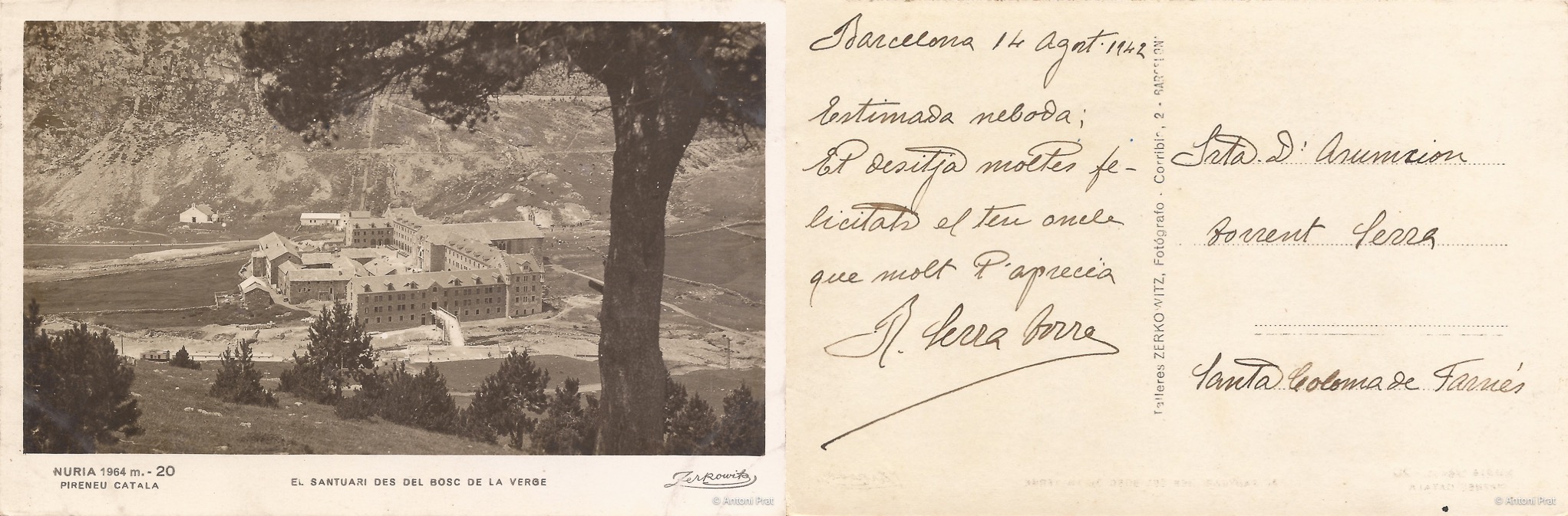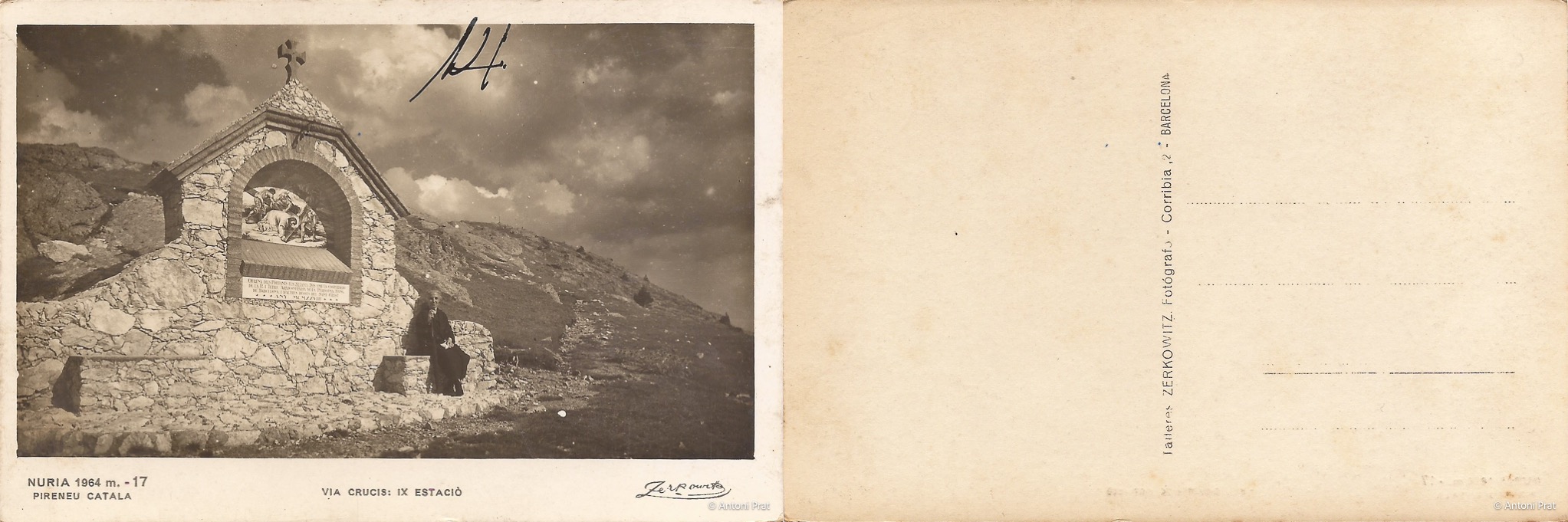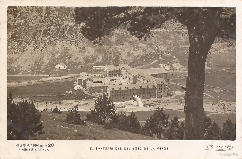 Nova col·lecció de postals numerades del santuari de Núria, amb el títol Nuria 1964, editades per Zerkowitz. Molt probablement l’anotació 1964 faci referència a l’alçada que es troba el santuari.