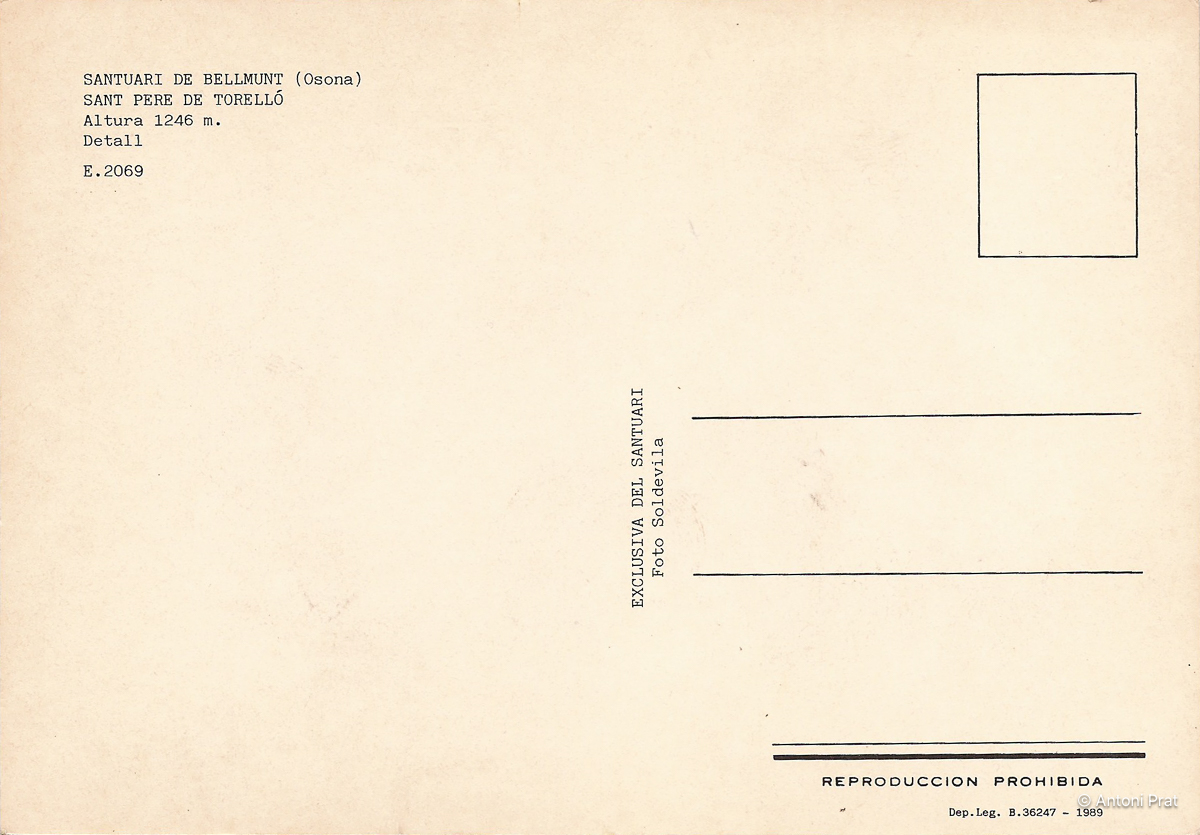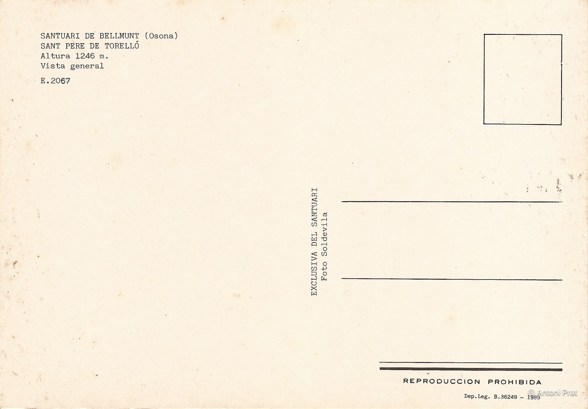 Col·lecció de postals en color editades pel mateix santuari de Bellmunt amb imatges fetes per Soldevila, fotògraf de Sant Pere de Torelló.