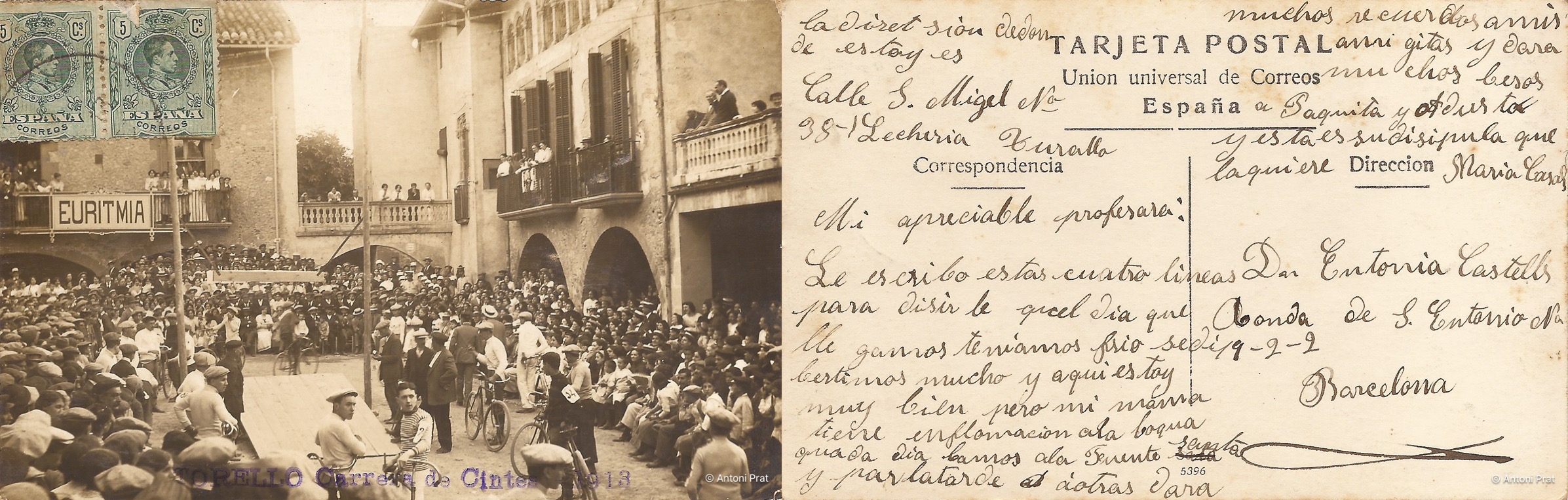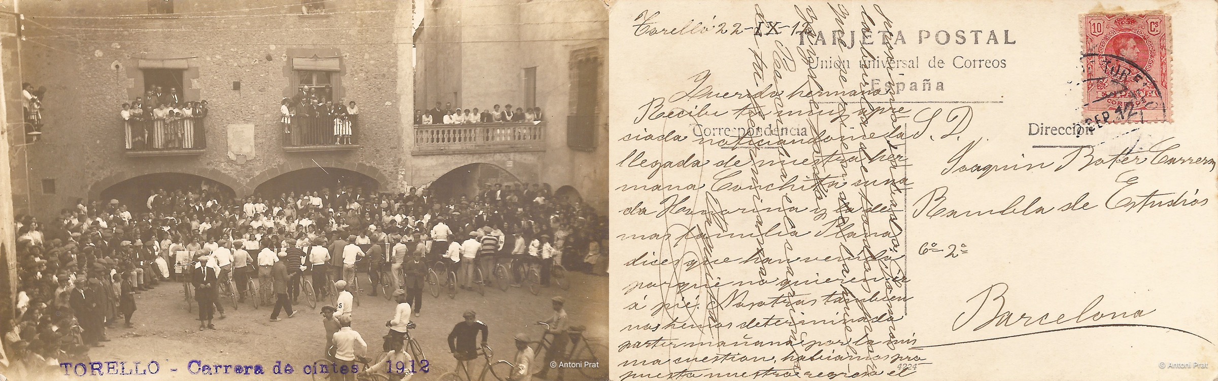 Col·lecció de postals en blanc i negre. En aquest cas, i segons indica l’anunciat del seu davant, aplegades sota una mateixa temàtica: Torelló Carrera de Cintes.