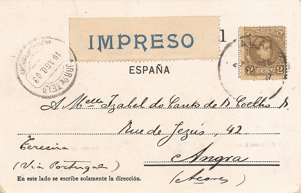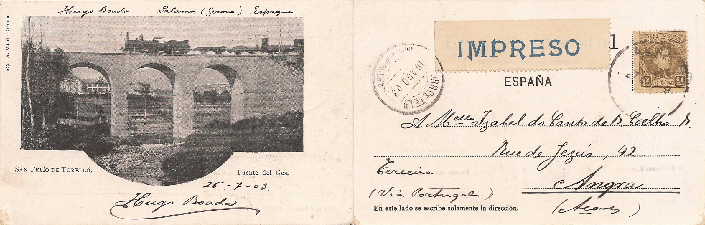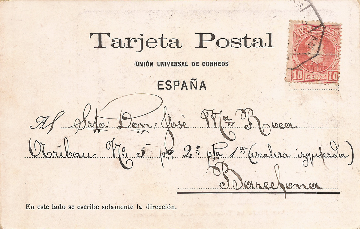 Se sap que l’any 1906 aquesta particularitat va quedar regulada, doncs seguint l’ordre de les “Unión Postal Universal” s’establí que les postals en el revers fossin partides, al costat dret aniria l’adreça i a l’esquerra, el text.
