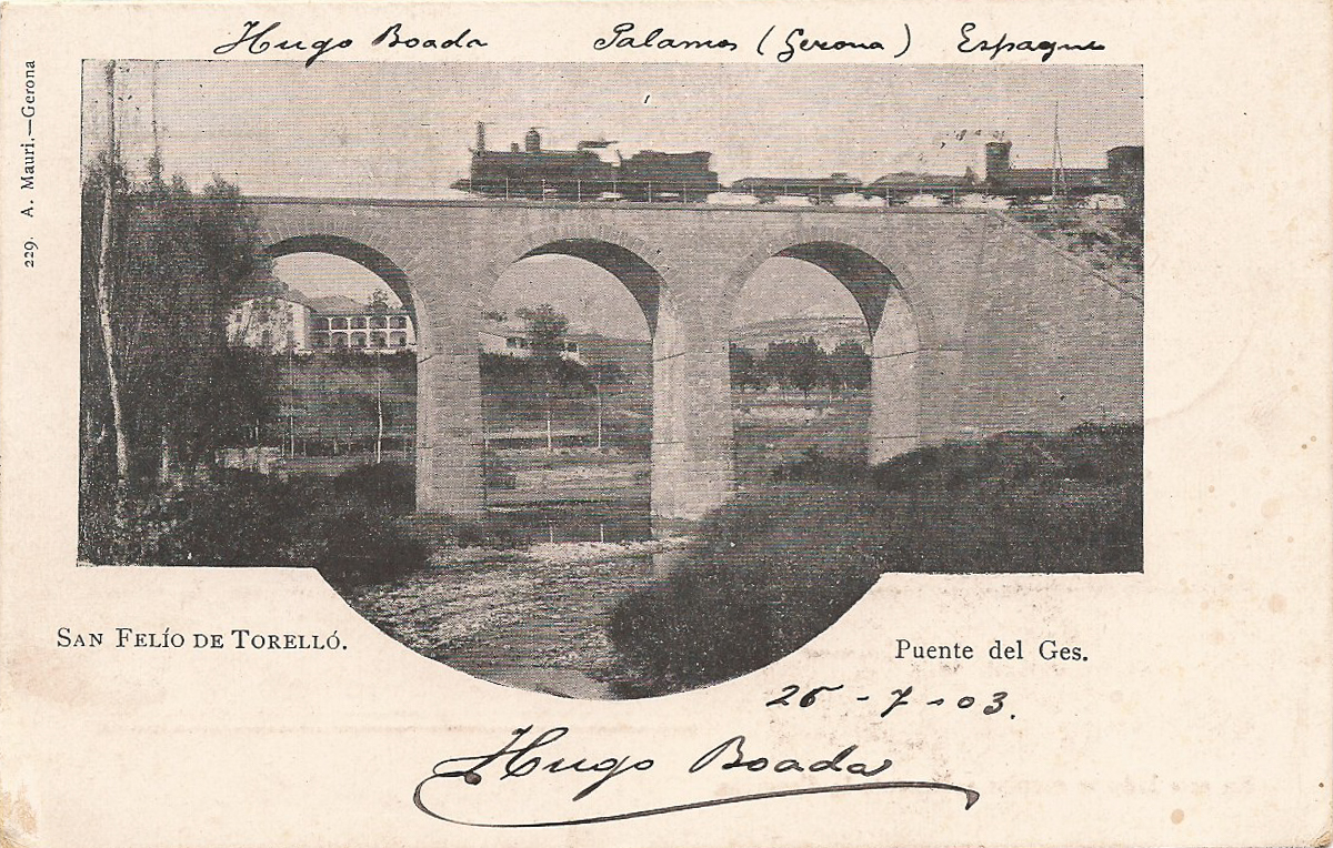 Explicar que aquest fotògraf d’època va editar cap a l’any 1901 ó 1902 una col·lecció de 331 postals numerades, amb el literal “A. Mauri-Gerona”. Una part d’elles, concretament les que van del número 228 al 234 fan referència a Torelló i els seus voltants.