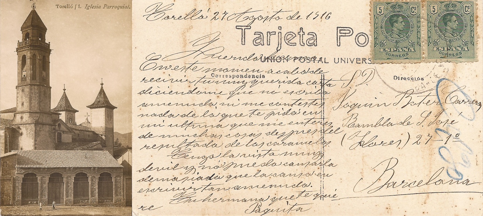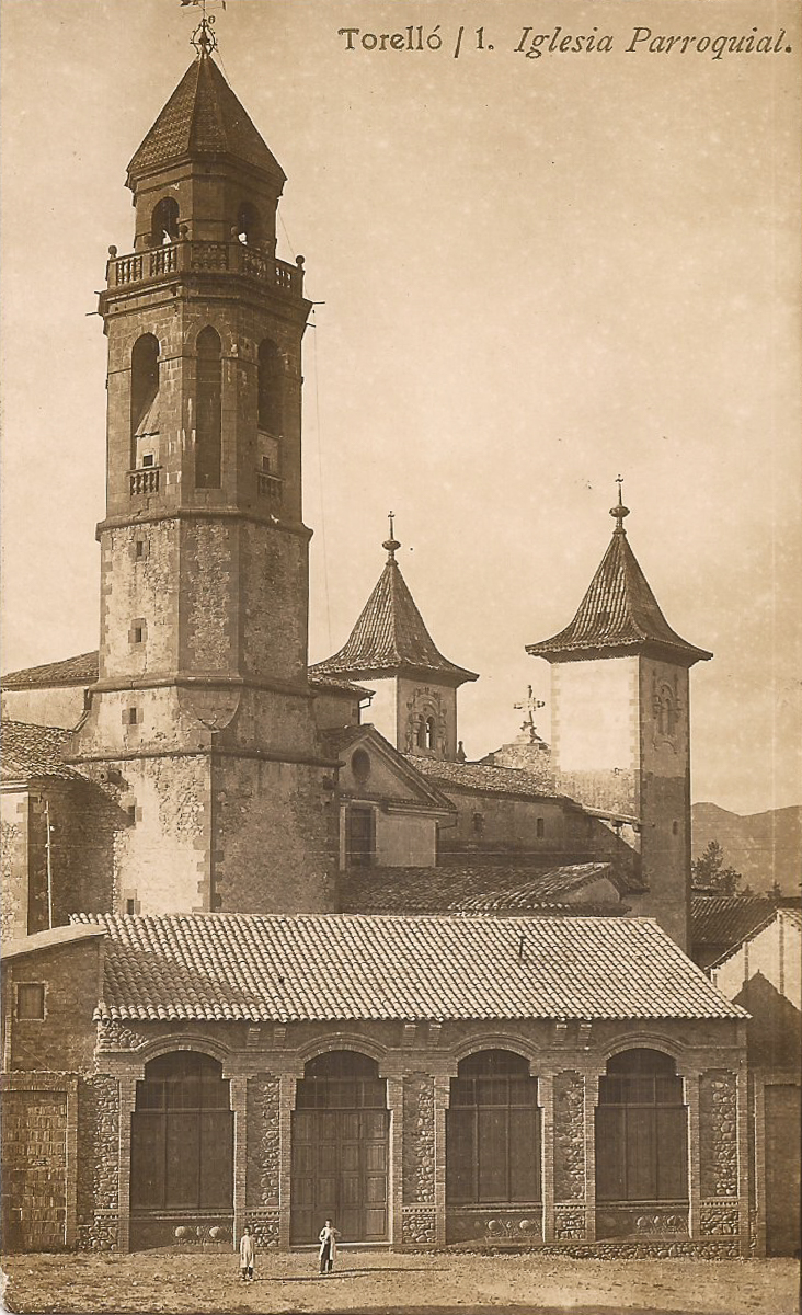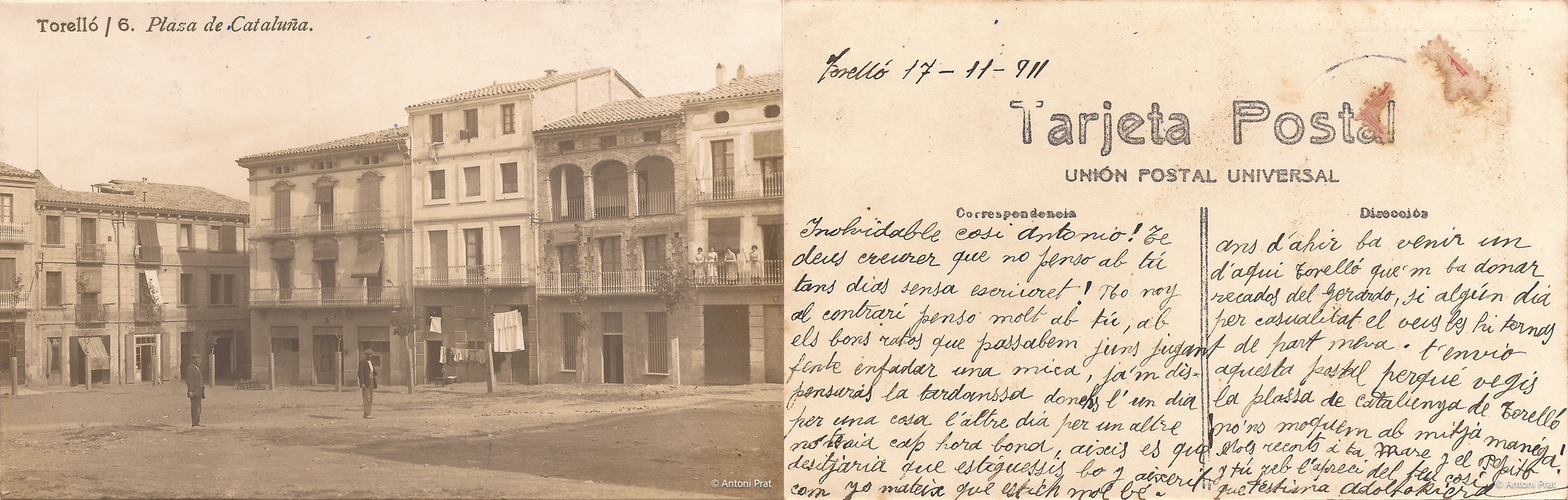 Molt bonica la imatge núm. 1 Iglesia Parroquial de la plaça Nova amb l’edifici de l’escola Dominical que es va inaugurar l’any 1911.