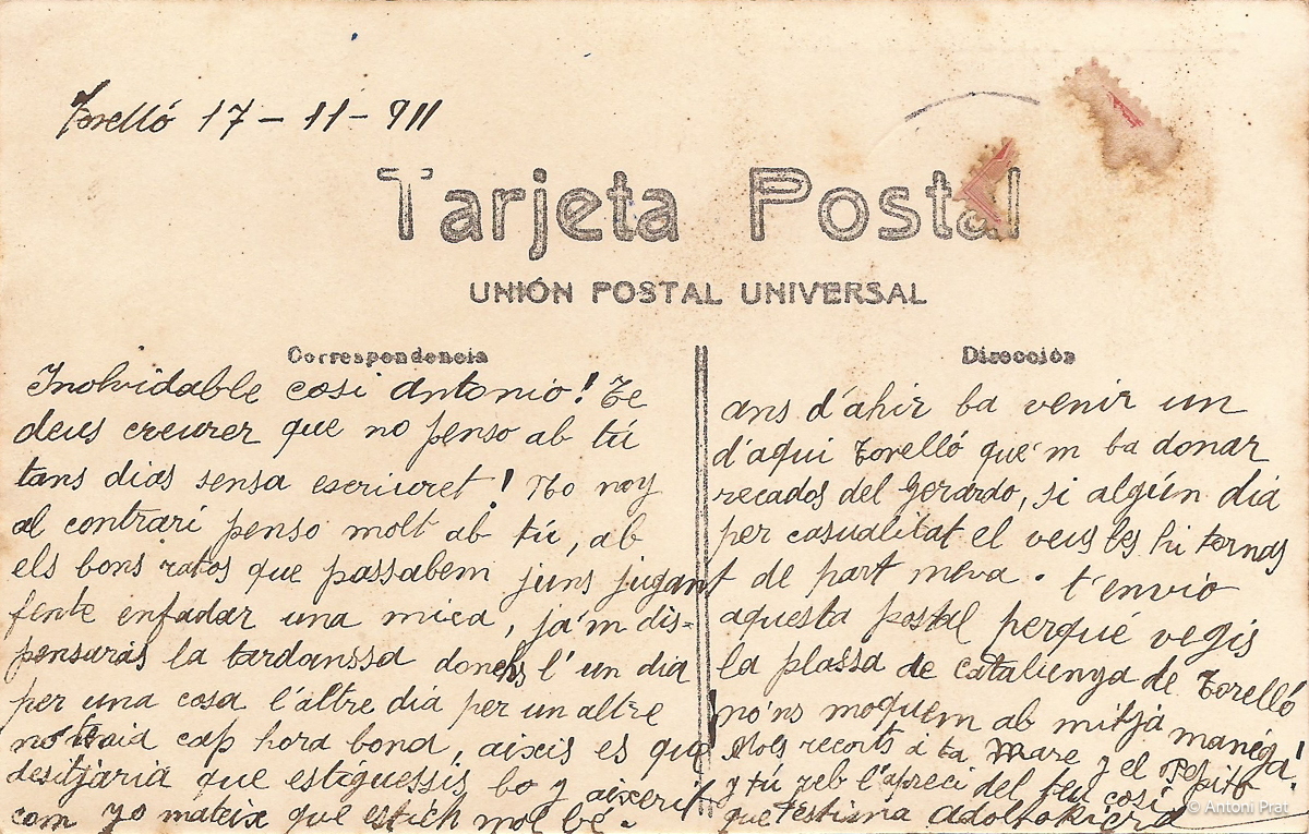 També molt curiós l’escrit del revers de la postal núm. 4 – Villa Maria al presentar el text escrit una part en horitzontal, una altra part en sentit vertical, i una altra més en diagonal.