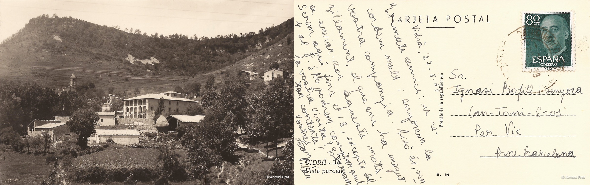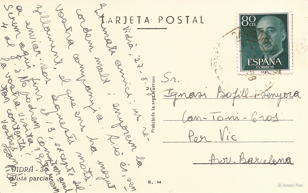 Es tracta d’una col·lecció de postals en blanc i negre, per cert d’un to fosc pujat, de Vidrà i el seu entorn.