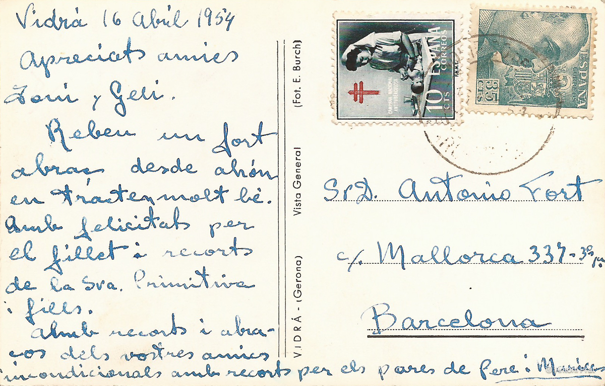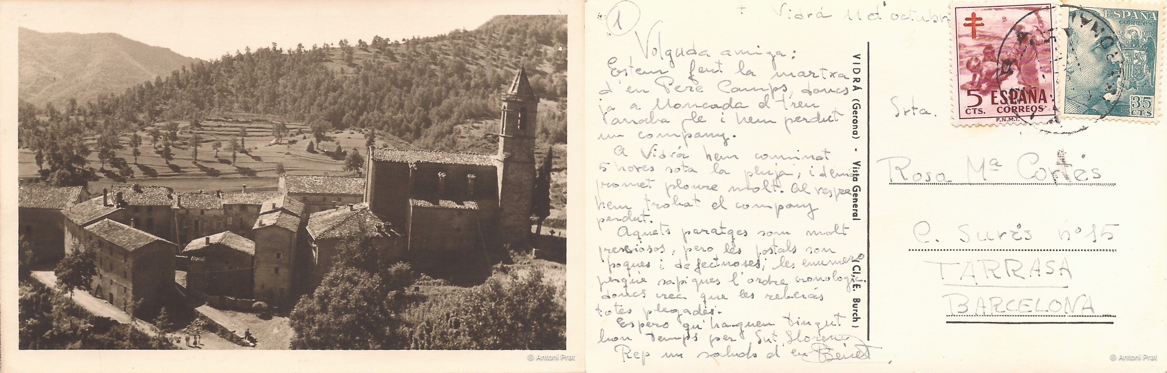 Es tracta d’una col·lecció de postals en blanc i negre de Vidrà i els seus entorns. Com a identificació podem llegir E. Burch. Tot i tractar-se del mateix autor, s’editaren en edicions diferents doncs també podem trobar formats diferents.