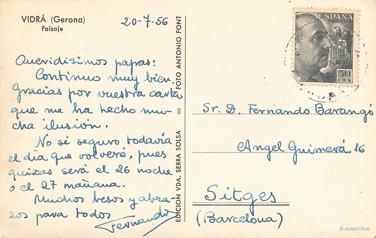 I com a editor: EDICION VDA. SERRA SOLSA = FOTO ANTONIO FONT. No porten incorporada cap mena de numeració. En una postal hi consta el 1956 com a any de circulació.