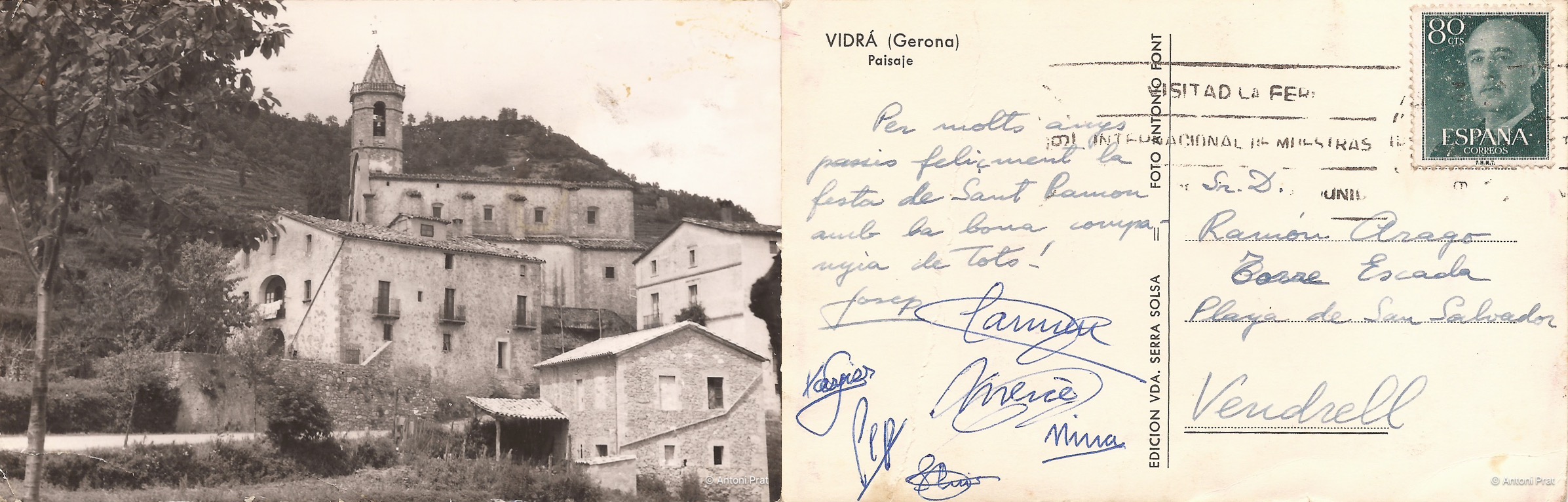Col·lecció de postals en blanc i negre de Vidrà i el seu entorn. En el seu revers hi figura la mateixa identificació en totes elles: VIDRÁ (Gerona) – Paisaje.