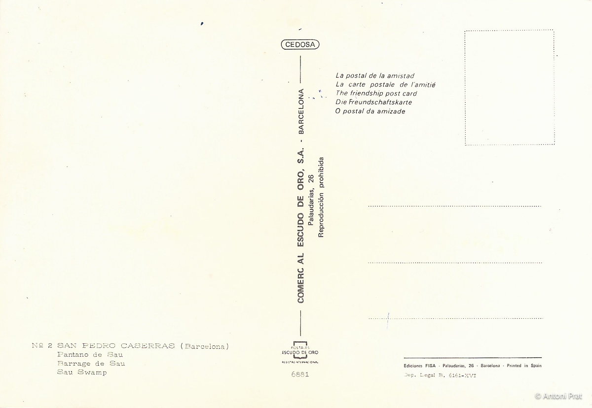 Col·lecció de postals en color de Vilanova de Sau i el seu entorn, focalitzat en imatges de l’embassament de Sau. Editades per Comercial Escudo de Oro.