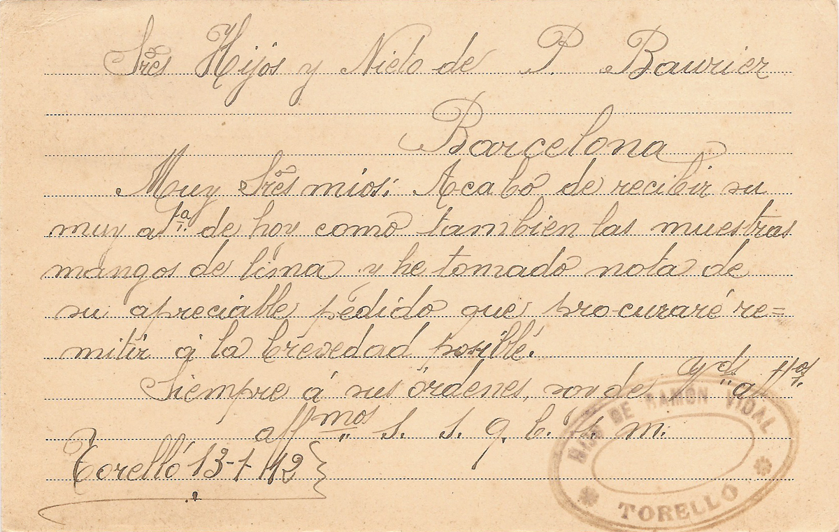 A diferència de les il·lustrades, aquestes porten en una cara l’adreça del destinatari, i en l’altra el redactat del contingut. En trobem de circulades els anys 1906, 1911, 1912, 1917 i fins alguna de 1959.