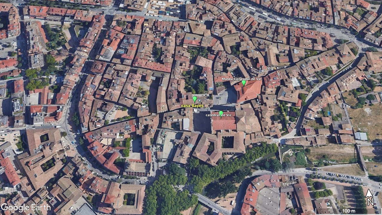 Reforma l’any 1906 d’una casa del segle XVIII situada a l’actual plaça de la Catedral de Vic (aleshores plaça Santa Maria) propietat de la reconeguda família Bayés. Les obres van afectar principalment la planta baixa on hi havia el consultori del prestigiós metge Càndid Bayés i el primer pis, habitatge de la família.