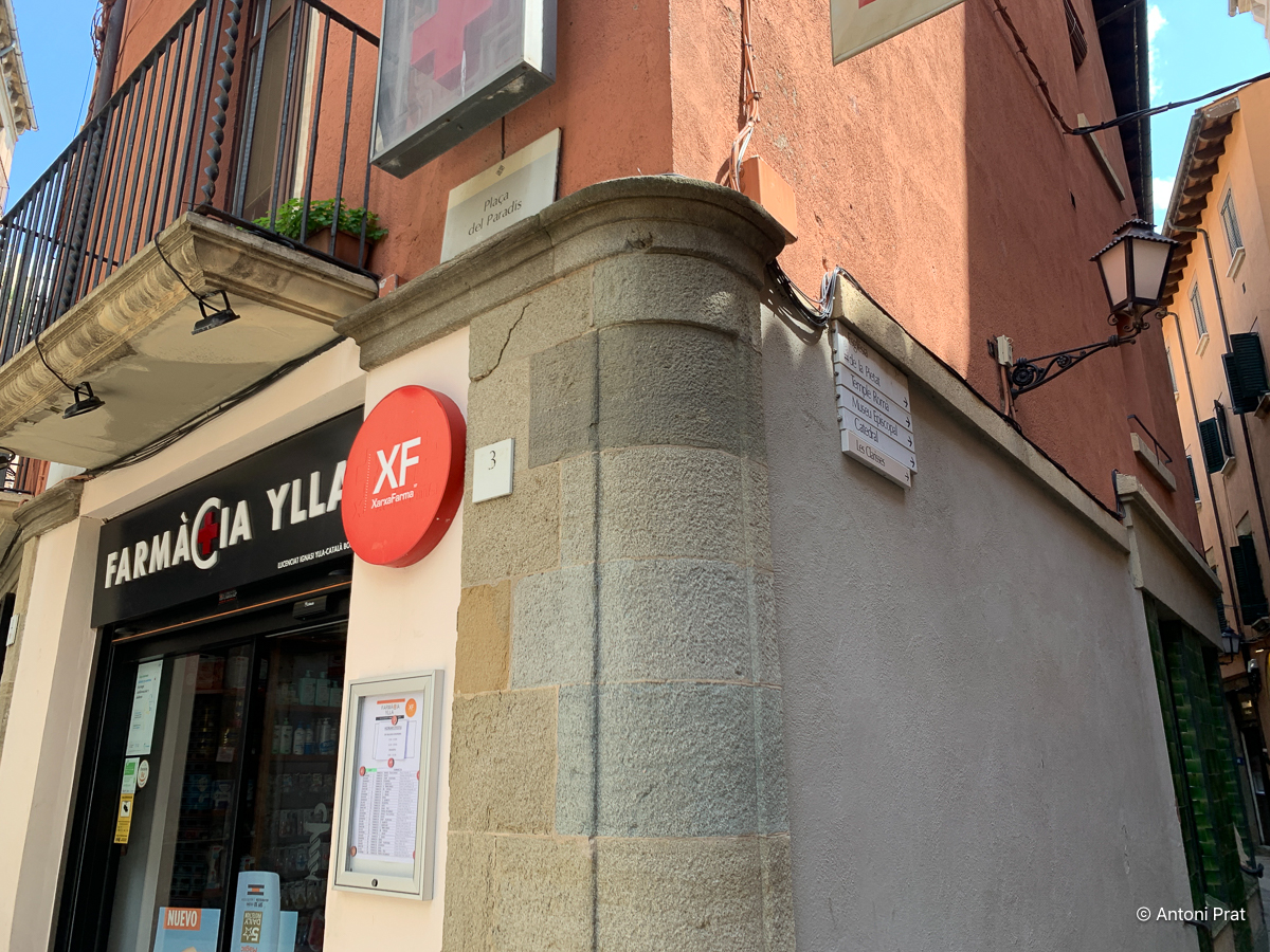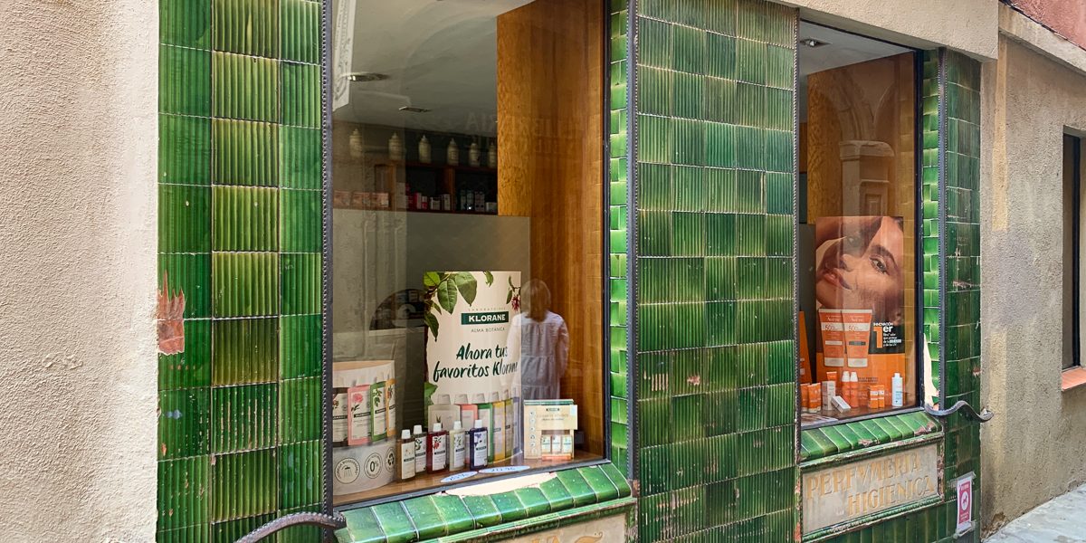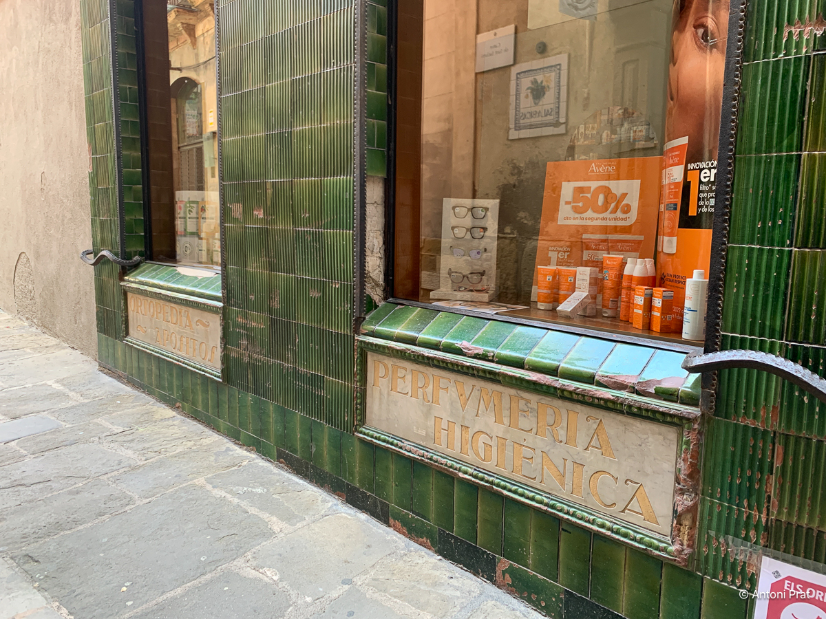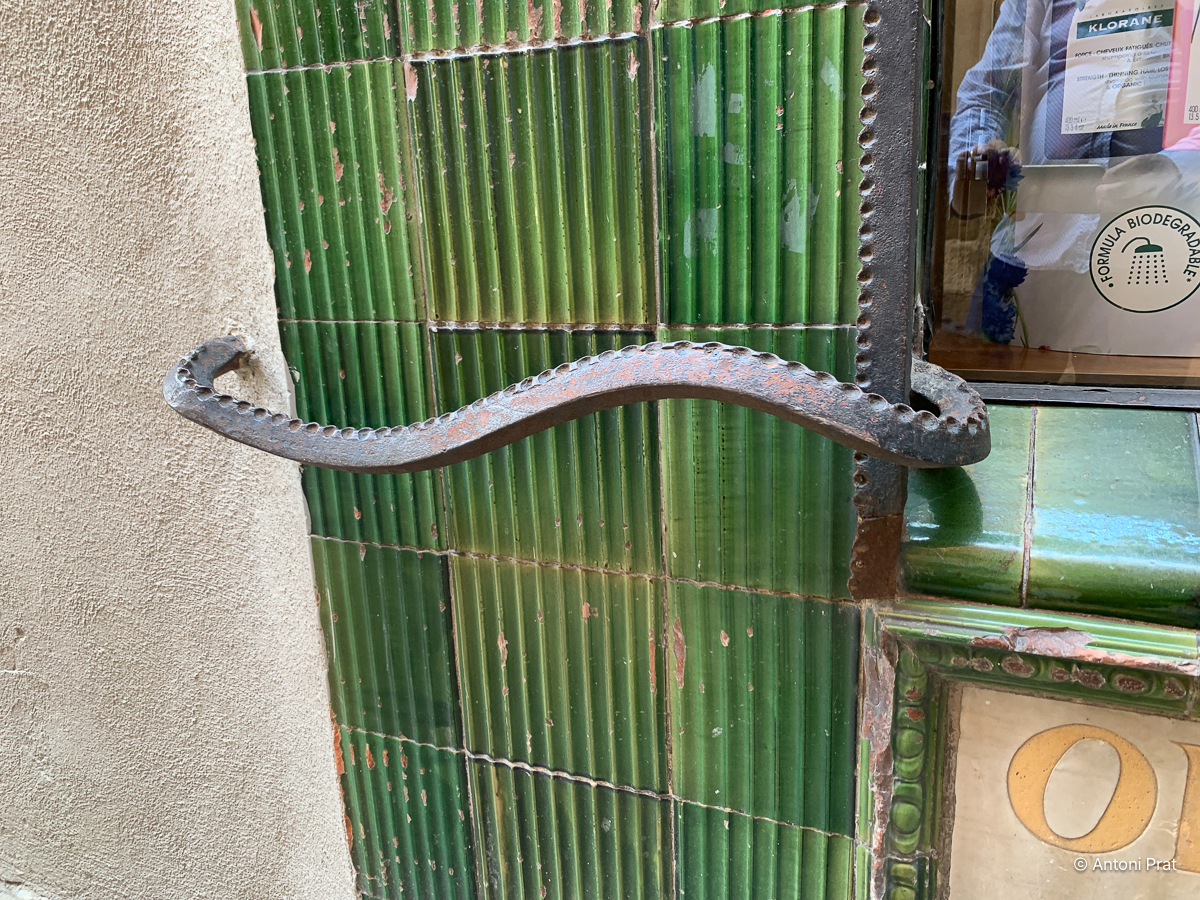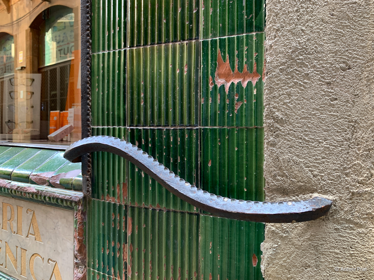 A la façana del carrer Sant Sadurní va obrir dos aparadors rectangulars envoltats amb rajola estriada de color verd i produïda a La Gabarra de la Bisbal d’Empordà.