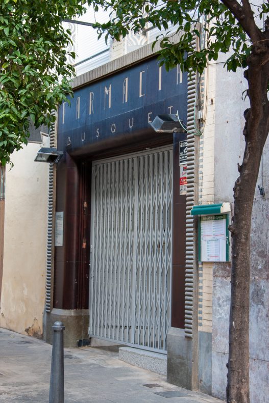 Farmàcia de Carles Busquet Masip del carrer Pons i Gallarza 92 de Barcelona, al barri de Sant Andreu. Obra realitzada l’any 1943.