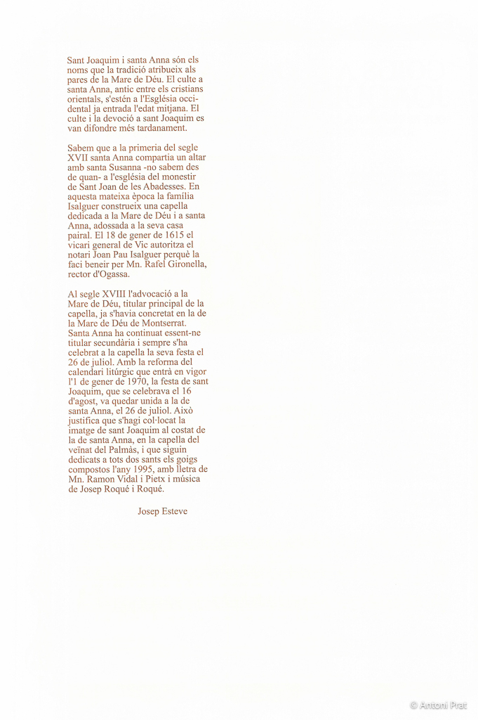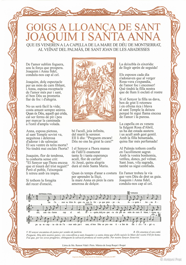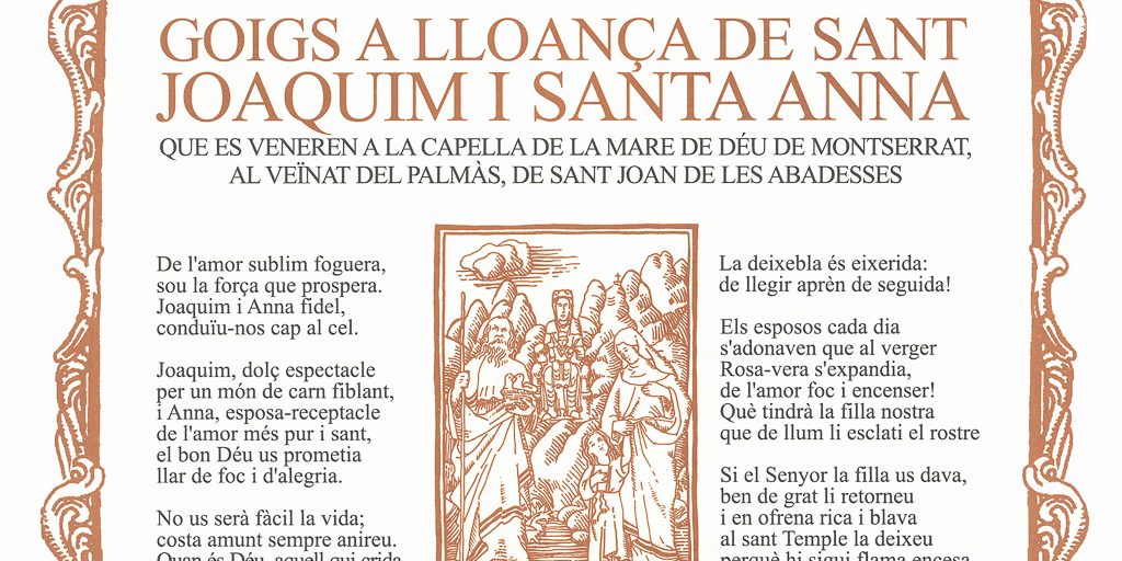 GOIGS A LLOANÇA DE SANT JOAQUIM I SANTA ANNA, QUE ES VENEREN A LA CAPELLA DE LA MARE DE DÉU DE MONTSERRAT, AL VEÏNAT DEL PALMÀS, DE SANT JOAN DE LES ABADESSES