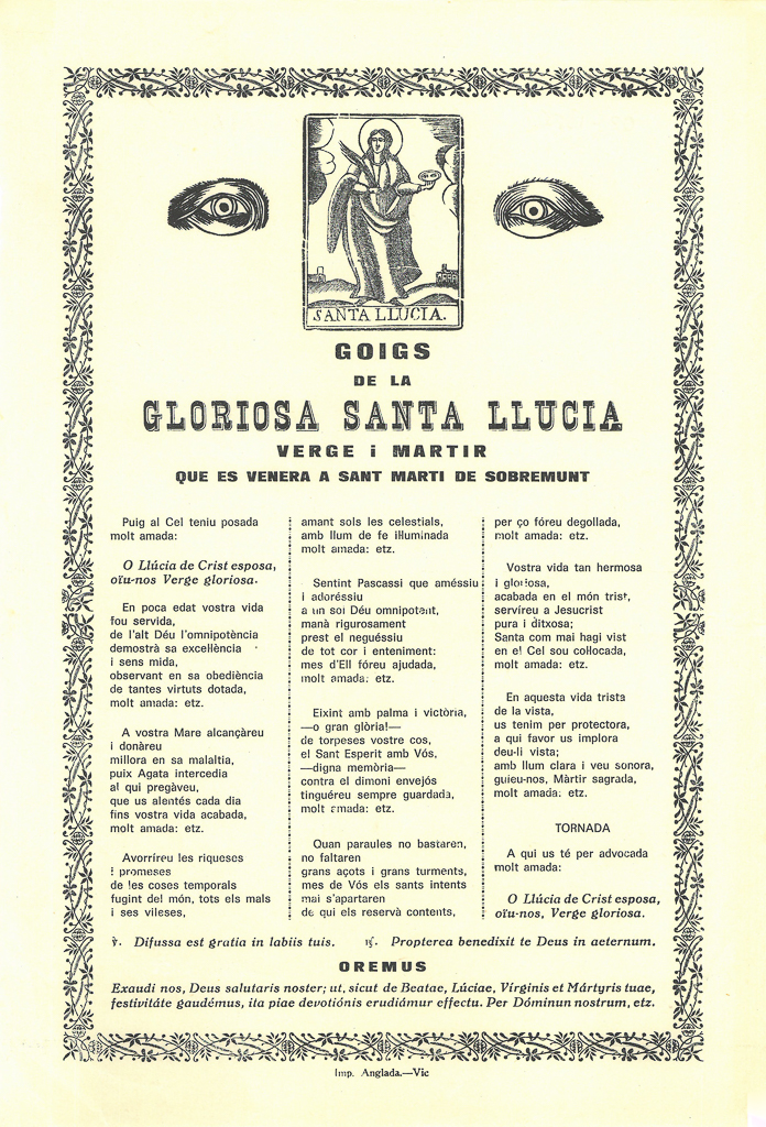 GOIGS DE LA GLORIOSA SANTA LLUCIA, VERGE I MARTIR QUE ES VENERA A SANT MARTI DE SOBREMUNT