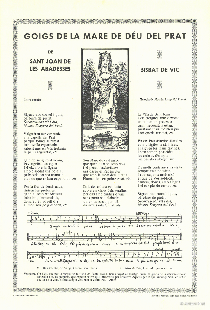 GOIGS DE LA MARE DE DÉU DEL PRAT DE SANT JOAN DE LES ABADESSES, BISBAT DE VIC