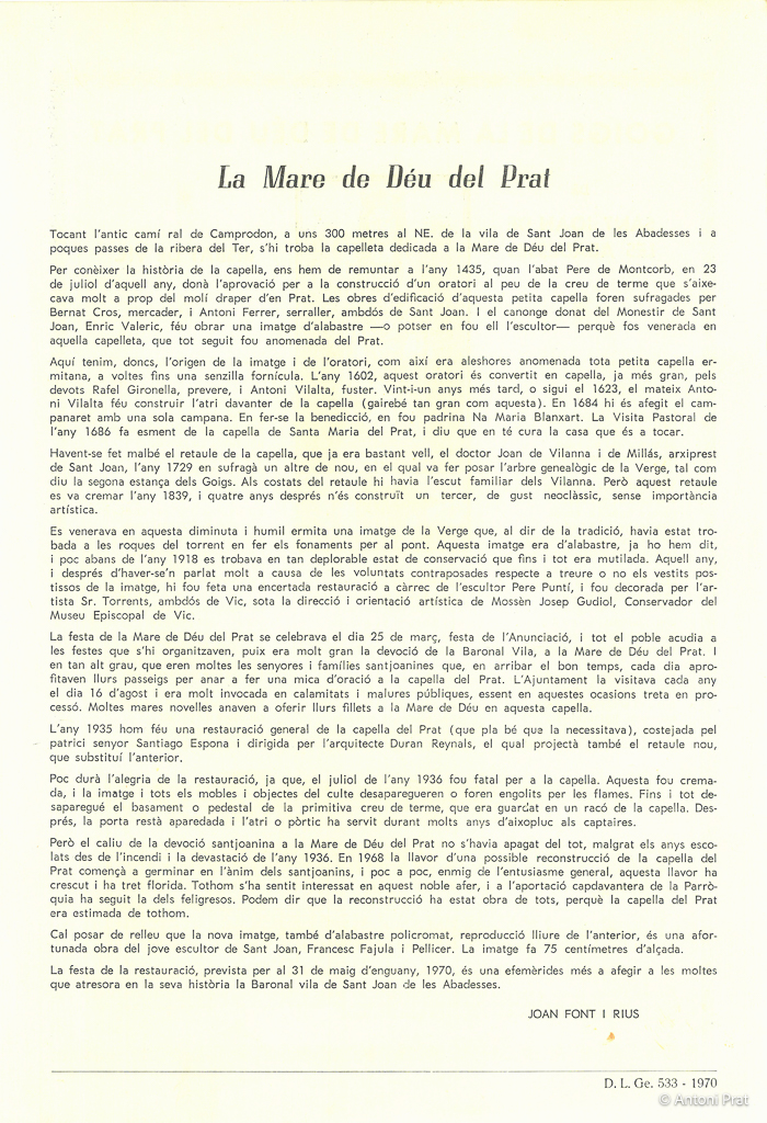 amb retall d’història de Joan Font i Rius