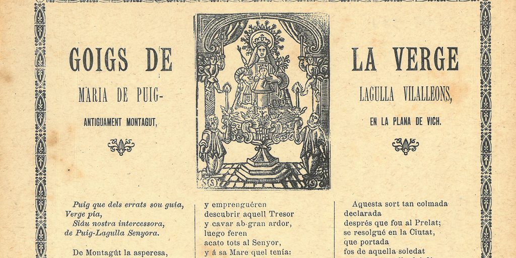 GOIGS DE LA VERGE MARIA DE PUIGLAGULLA VILALLEONS, ANTIGUAMENT MONTAGUT, EN LA PLANA DE VICH