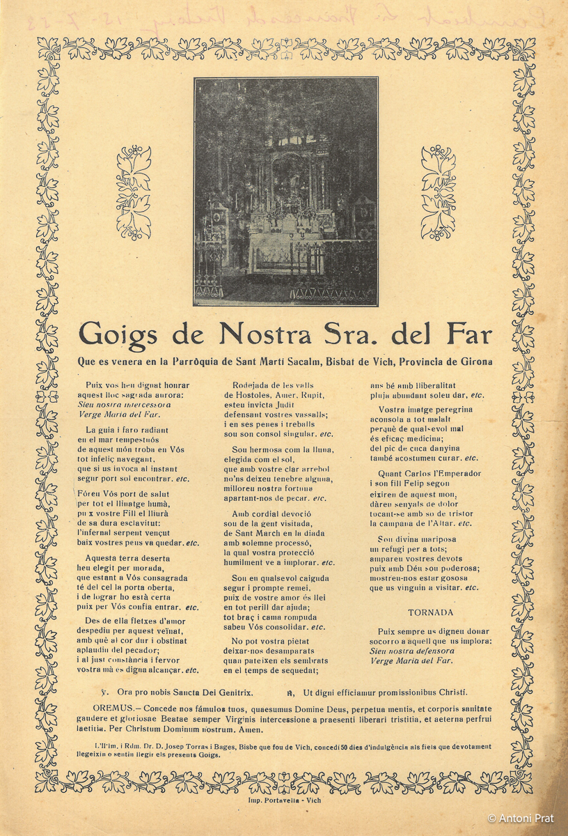GOIGS DE NOSTRA SRA. DEL FAR QUE ES VENERA EN LA PARRÒQUIA DE SANT MARTÍ SACALM, BISBAT DE VICH, PROVINCIA DE GIRONA