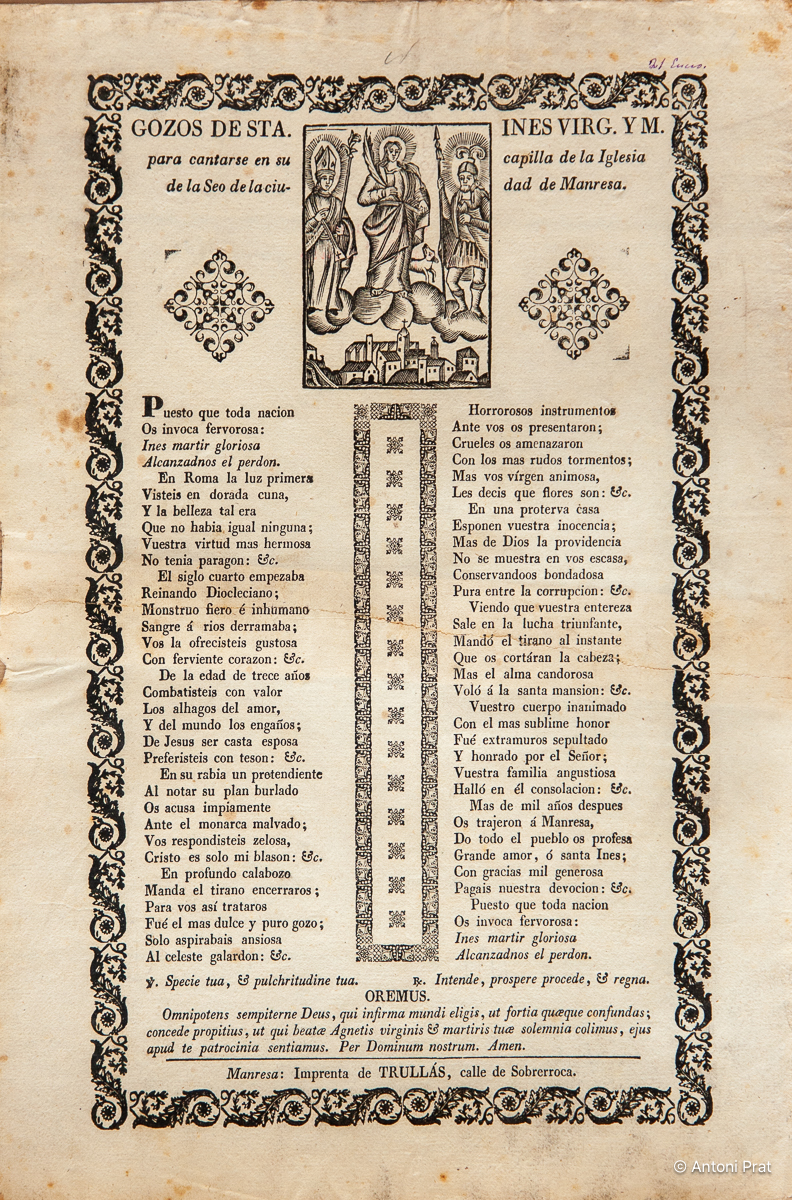 GOZOS DE STA. INES VIRG. Y M., PARA CANTARSE EN SU CAPILLA DE LA IGLESIA DE LA SEO DE LA CIUDAD DE MANRESA