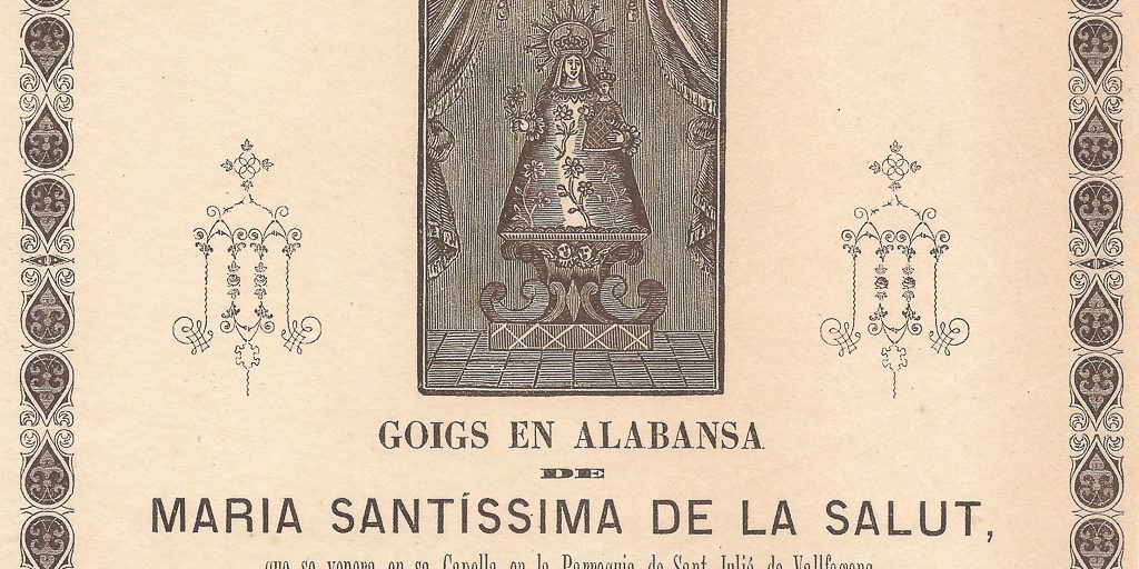 GOIGS EN ALABANSA DE MARIA SANTÍSSIMA DE LA SALUT, QUE SE VENERA EN SA CAPELLA EN LA PARROQUIA DE SANT JULIÁ DE VALLFOGONA