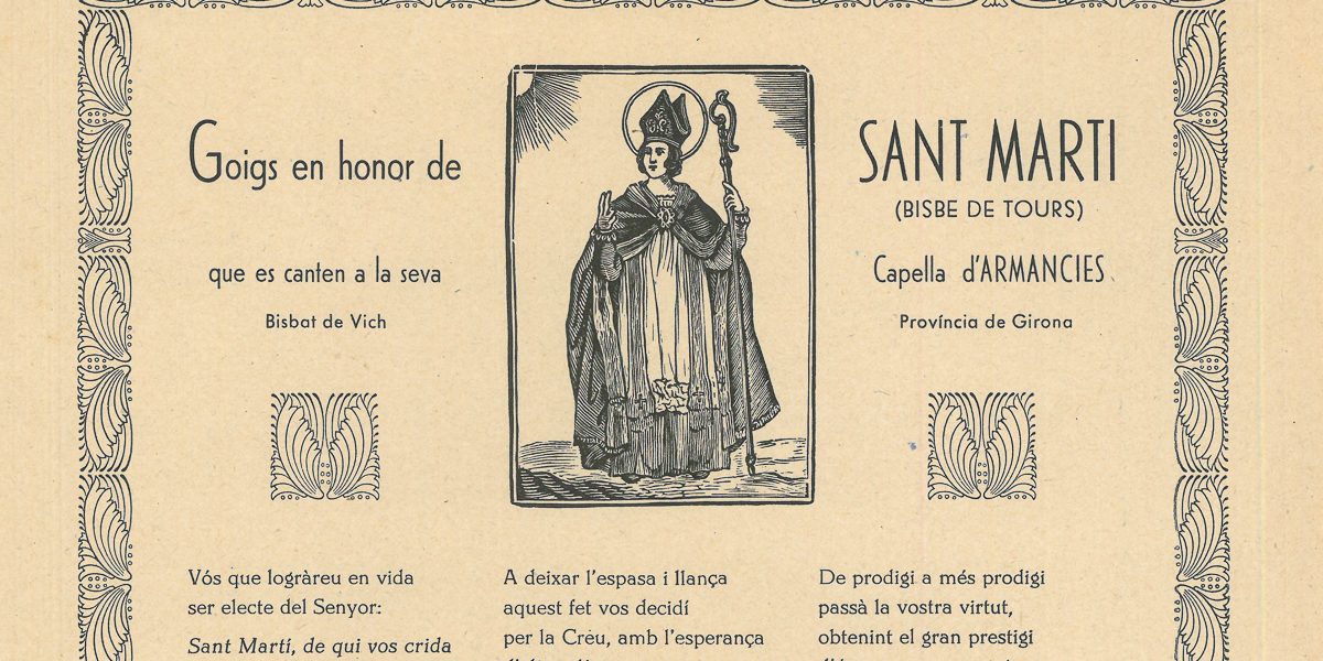 GOIGS EN HONOR DE SANT MARTI (BISBE DE TOURS) QUE ES CANTEN A LA SEVA CAPELLA D’ARMANCIES BISBAT DE VICH PROVÍNCIA DE GIRONA