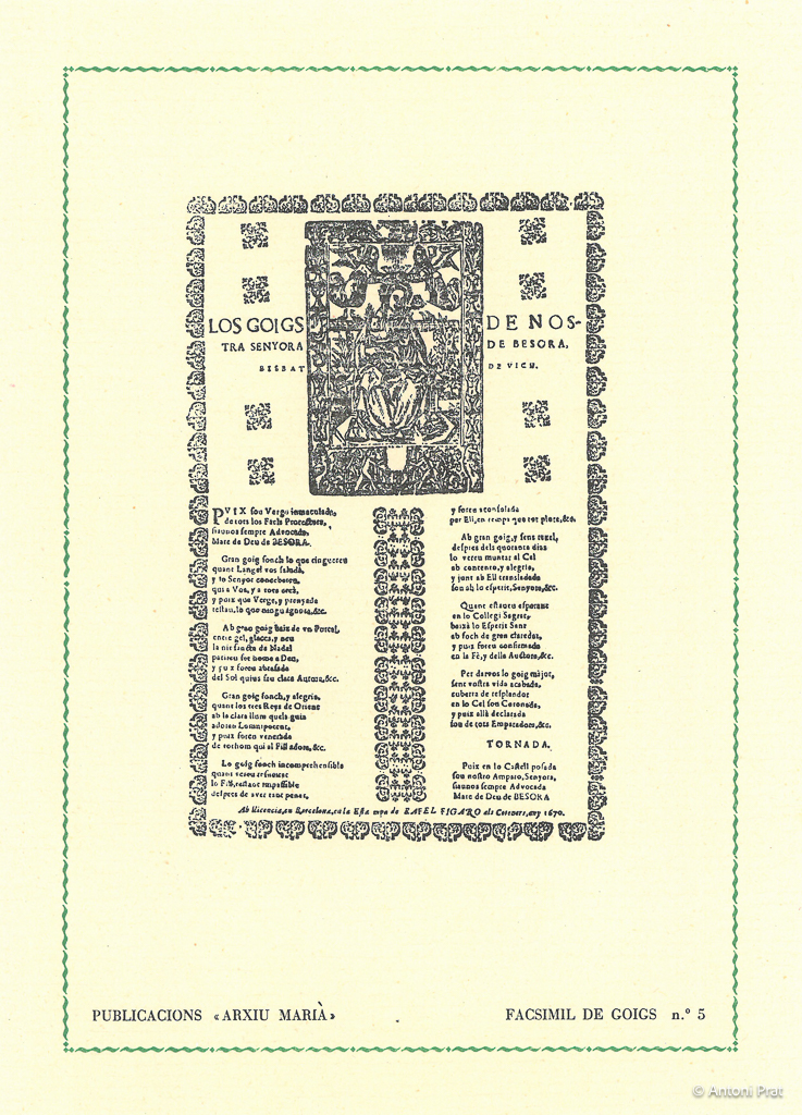 LOS GOIGS DE NOSTRA SENYORA DE BESORA, BISBAT DE VICH