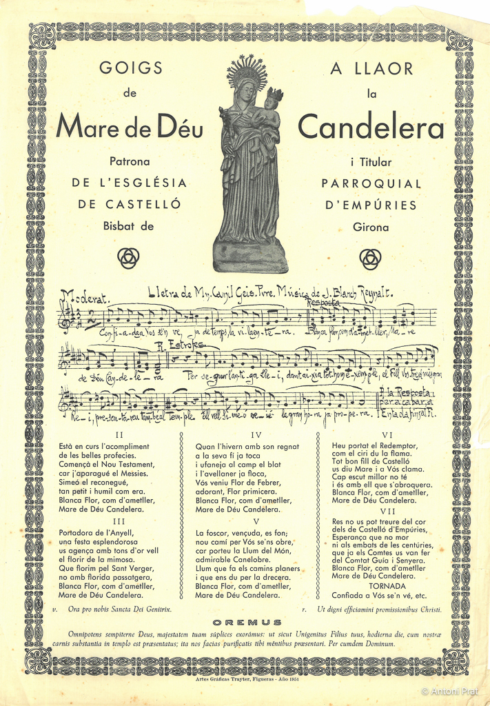 GOIGS A LLAOR DE LA MARE DE DÉU CANDELERA, PATRONA I TITULAR DE L’ESGLÉSIA PARROQUIAL DE CASTELLÓ D’EMPÚRIES BISBAT DE GIRONA