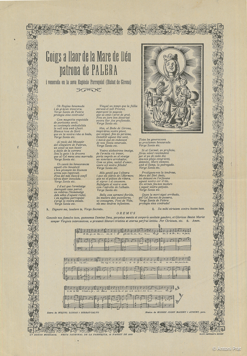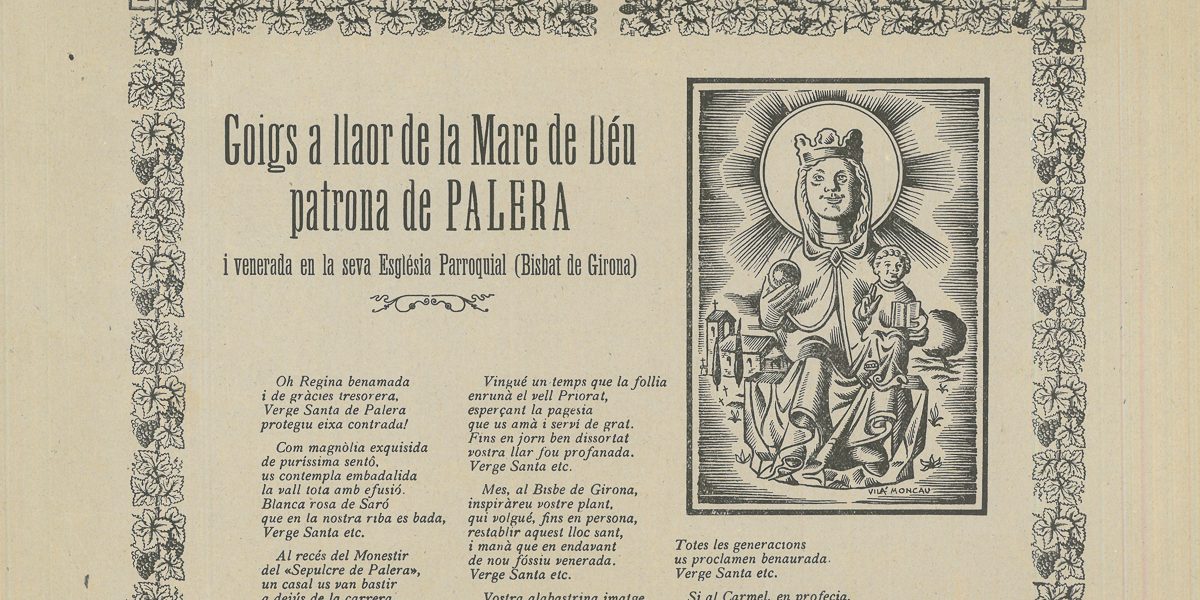 GOIGS A LLAOR DE LA MARE DE DÉU PATRONA DE PALERA I VENERADA EN LA SEVA ESGLÉSIA PARROQUIAL (BISBAT DE GIRONA)