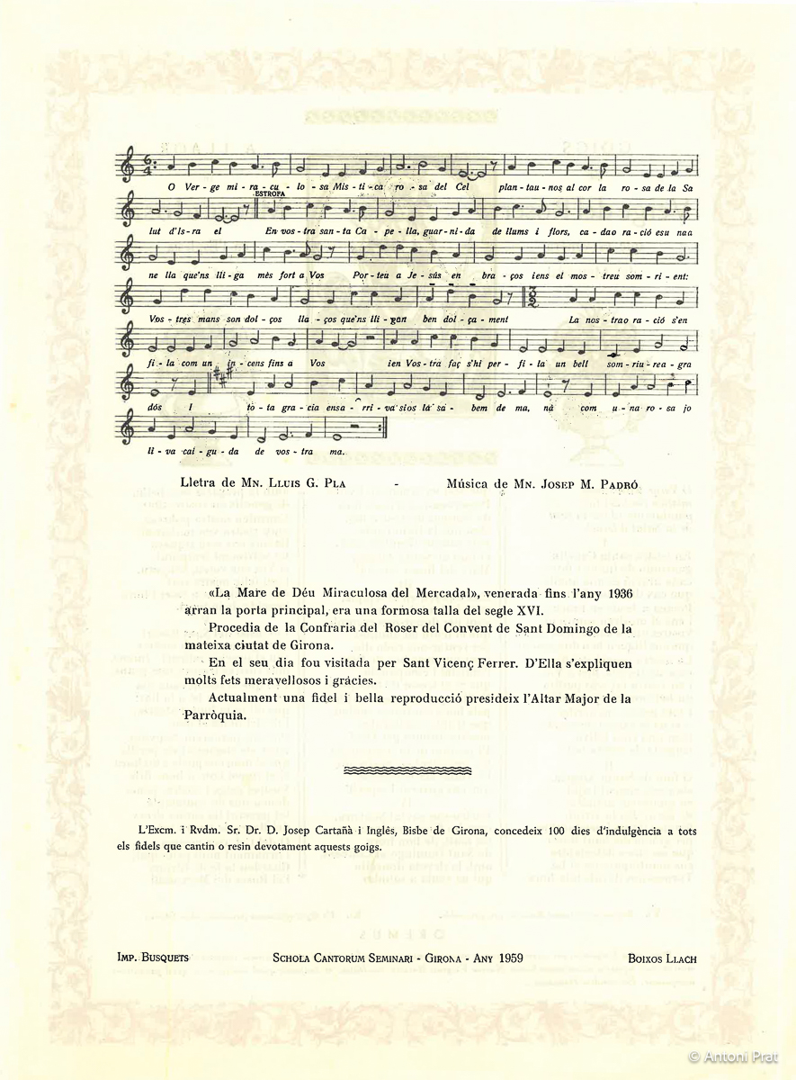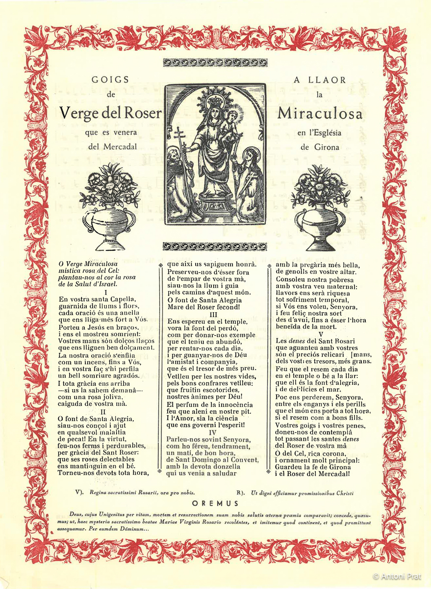 GOIGS A LLAOR DE LA VERGE DEL ROSER MIRACULOSA QUE ES VENERA EN L’ESGLÉSIA DEL MERCADAL DE GIRONA