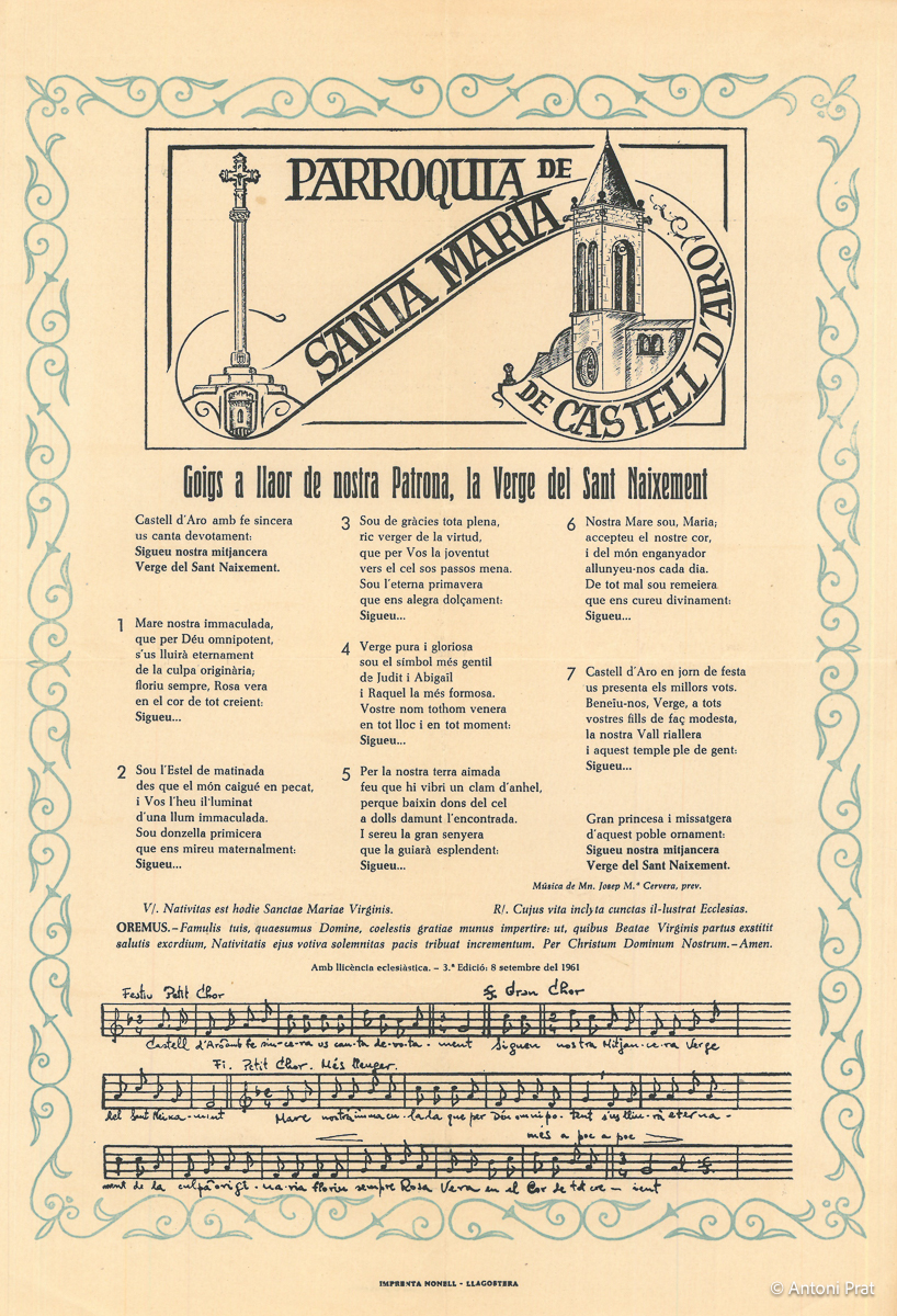 GOIGS A LLAOR DE NOSTRA PATRONA, LA VERGE DEL SANT NEIXEMENT PARROQUIA DE SANTA MARIA DE CASTELL D’ARO