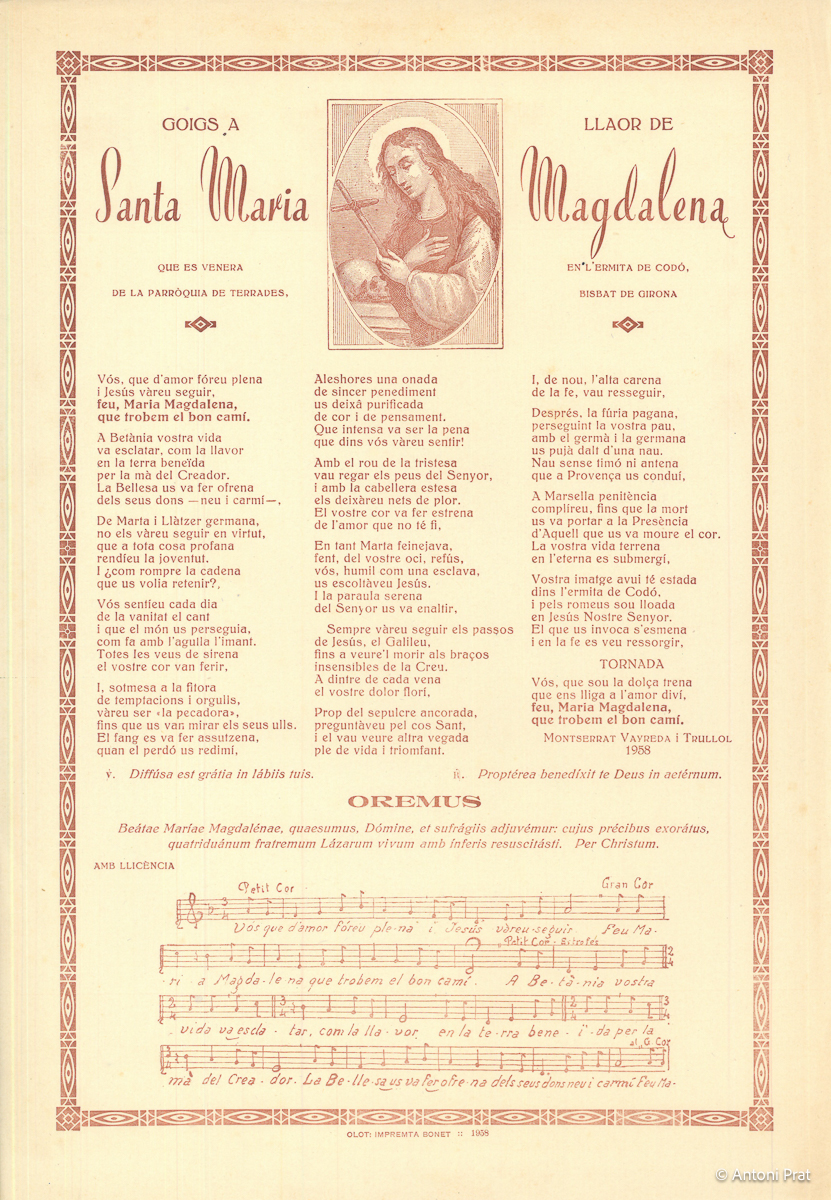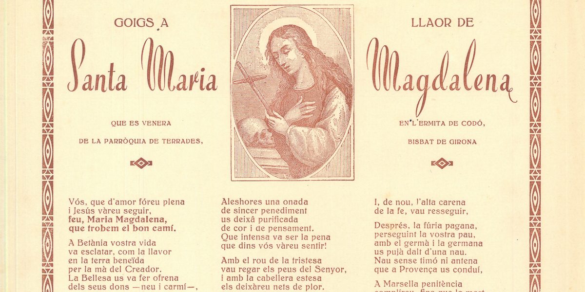 GOIGS A LLAOR DE SANTA MARIA MAGDALENA QUE ES VENERA EN L’ERMITA DE CODÓ, DE LA PARRÒQUIA DE TERRADES, BISBAT DE GIRONA
