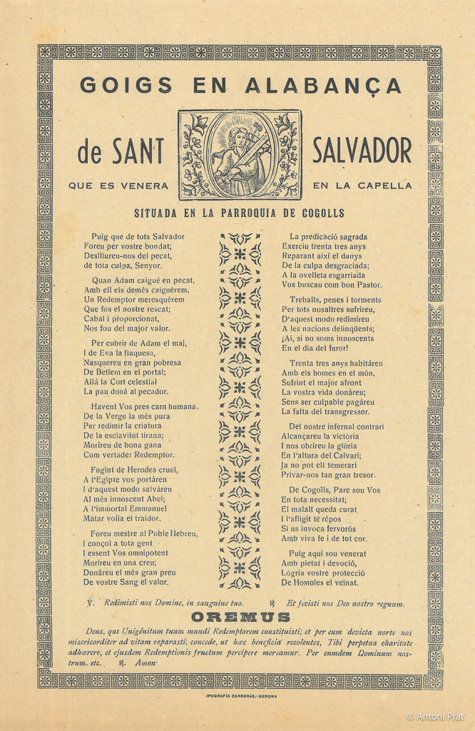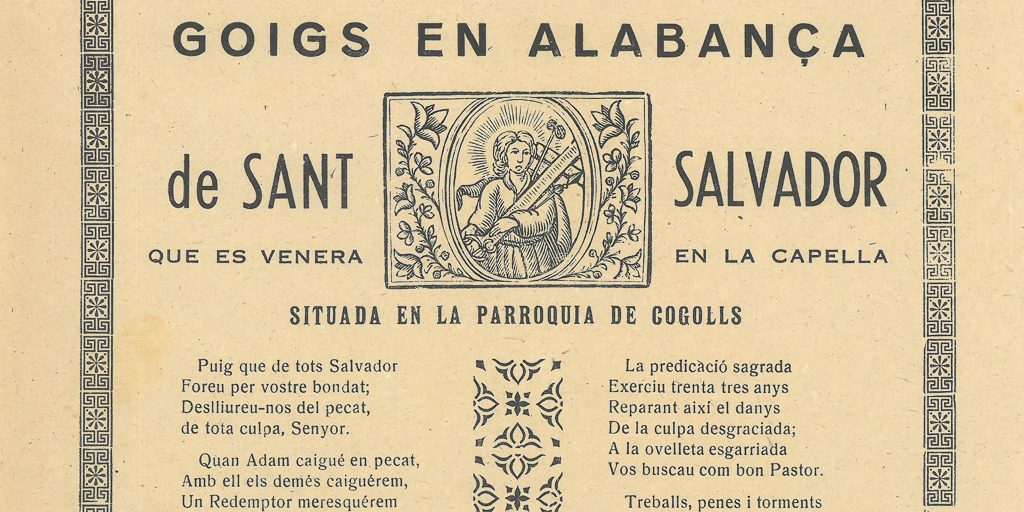GOIGS EN ALABANÇA DE SANT SALVADOR QUE ES VENERA EN LA CAPELLA SITUADA EN LA PARROQUIA DE COGOLLS