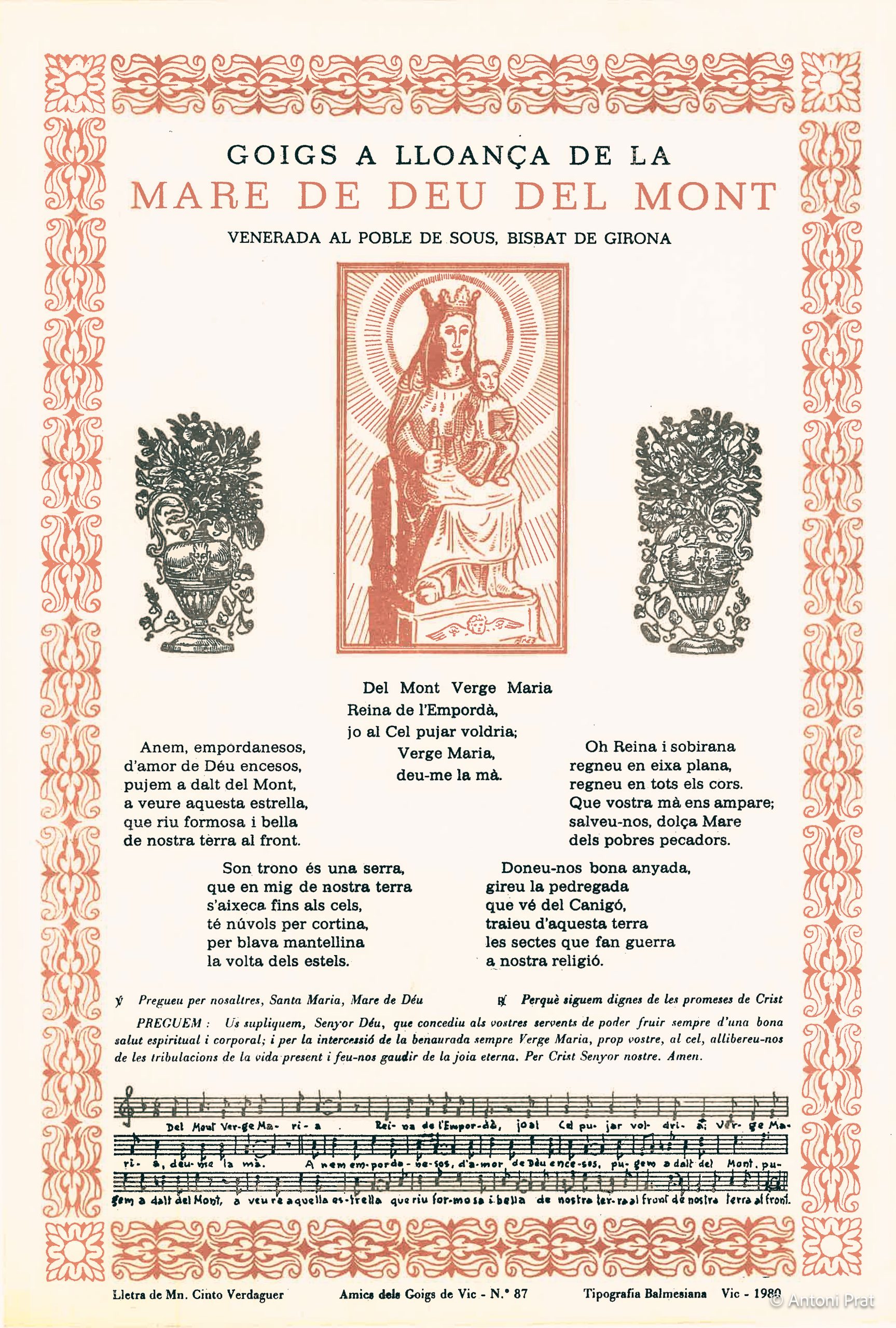 GOIGS A LLOANÇA DE LA MARE DE DEU DEL MONT VENERADA AL POBLE DE SOUS, BISBAT DE GIRONA